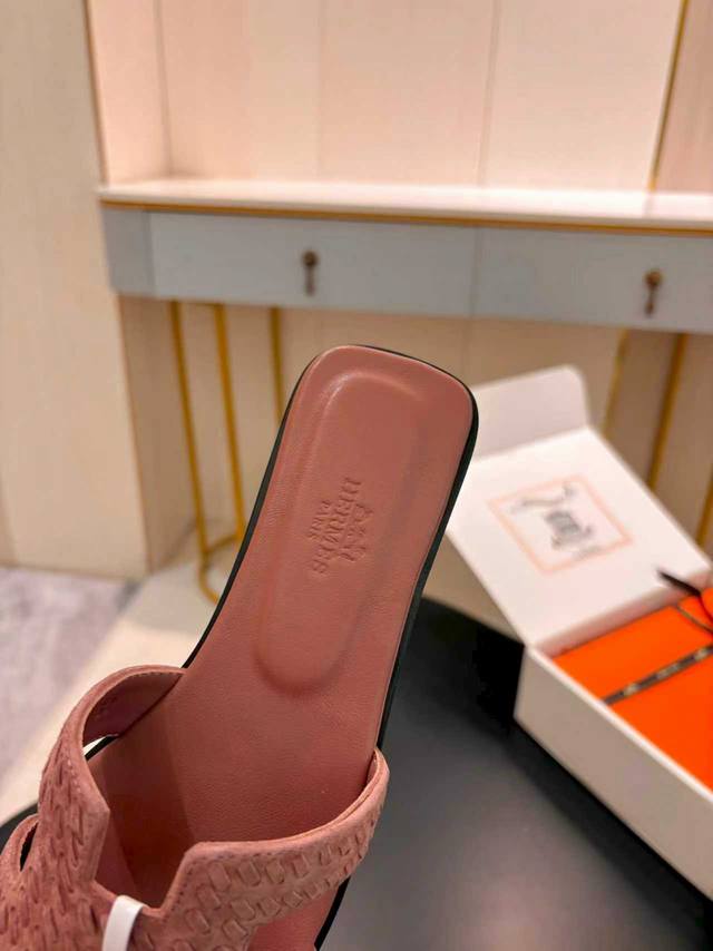 / 飞机盒另加10 * 爱玛仕 25 2025春夏新品 顶级版本经典H型Oran粗跟拖鞋系列 鞋面:原版特定牛皮 内里:进口混种羊皮 大底:原版意大利真皮大底 跟高