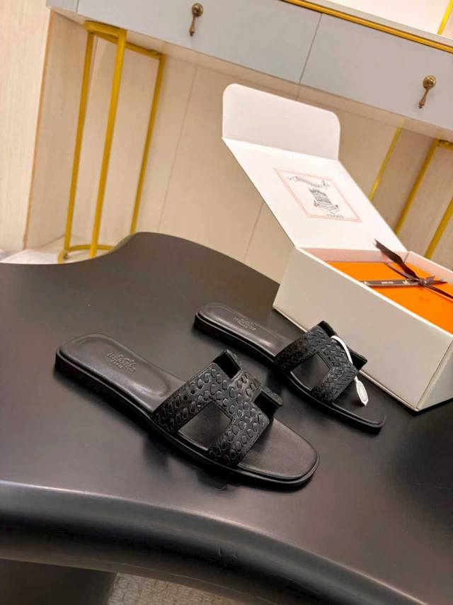 飞机盒另加10 * 爱玛仕 25 DDD 2025春夏新品 顶级版本经典H型Oran粗跟拖鞋系列 DDD 鞋面:原版特定牛皮 DDD 内里:进口混种羊皮 DDD 大底:原版意大利真皮大底 DDD 跟高:平底 5Cm DDD 鞋码: 35-39 40.41.42.定做不退换 DDD