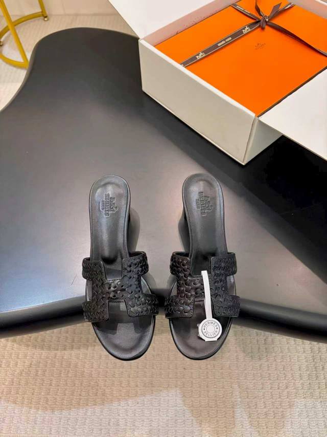 飞机盒另加10 * 爱玛仕 25 DDD 2025春夏新品 顶级版本经典H型Oran粗跟拖鞋系列 DDD 鞋面:原版特定牛皮 DDD 内里:进口混种羊皮 DDD 大底:原版意大利真皮大底 DDD 跟高:平底 5Cm DDD 鞋码: 35-39 40.41.42.定做不退换 DDD