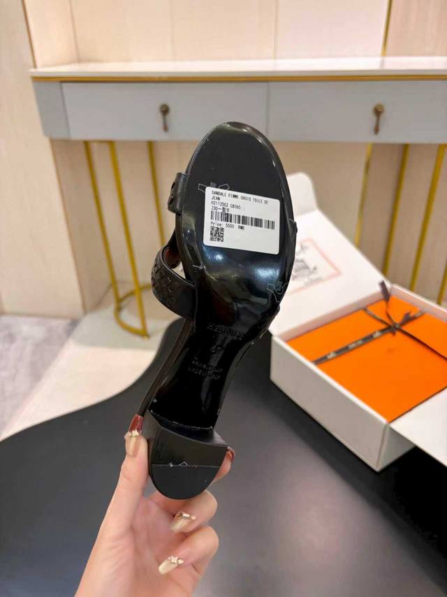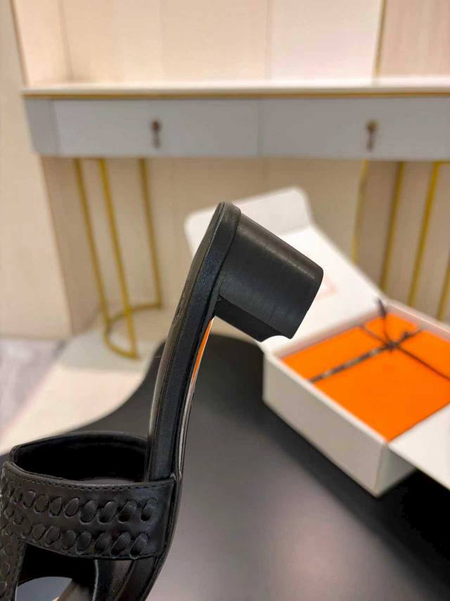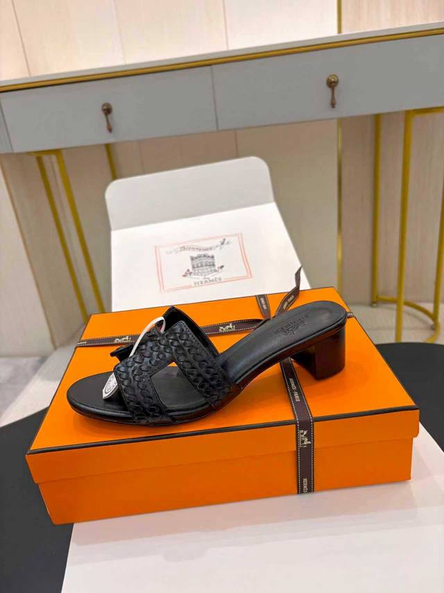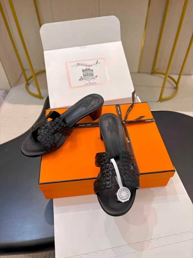/ 飞机盒另加10 * 爱玛仕 25 2025春夏新品 顶级版本经典H型Oran粗跟拖鞋系列 鞋面:原版特定牛皮 内里:进口混种羊皮 大底:原版意大利真皮大底 跟高