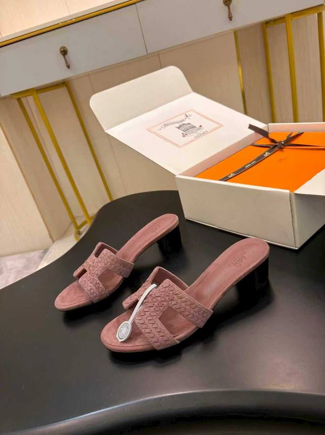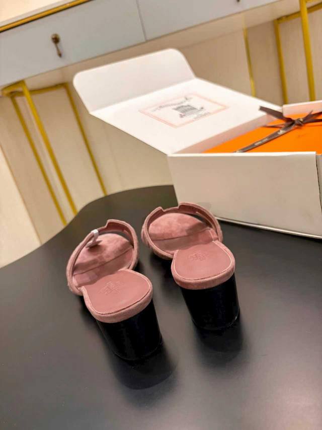 / 飞机盒另加10 * 爱玛仕 25 2025春夏新品 顶级版本经典H型Oran粗跟拖鞋系列 鞋面:原版特定牛皮 内里:进口混种羊皮 大底:原版意大利真皮大底 跟高