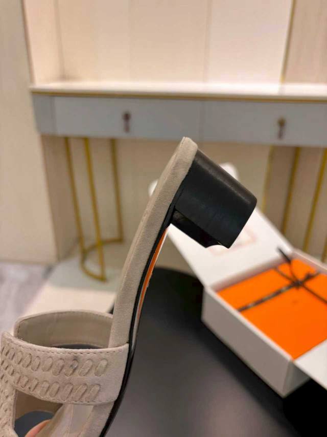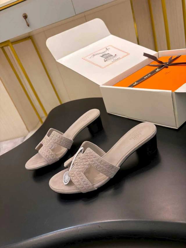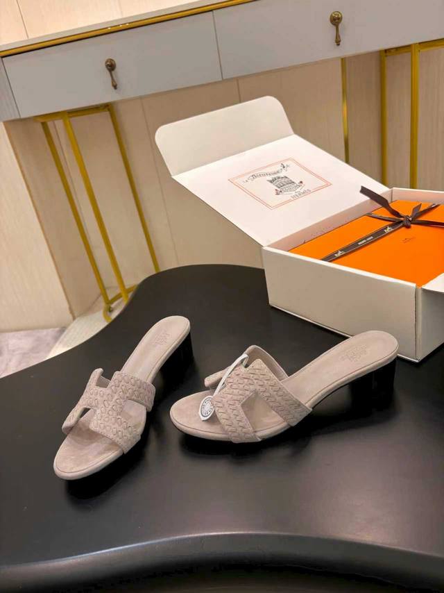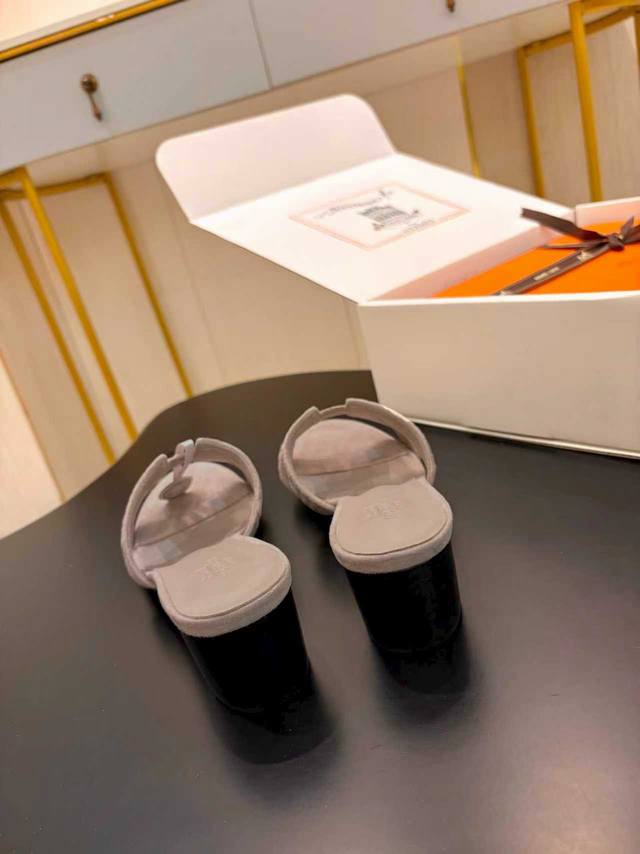 / 飞机盒另加10 * 爱玛仕 25 2025春夏新品 顶级版本经典H型Oran粗跟拖鞋系列 鞋面:原版特定牛皮 内里:进口混种羊皮 大底:原版意大利真皮大底 跟高