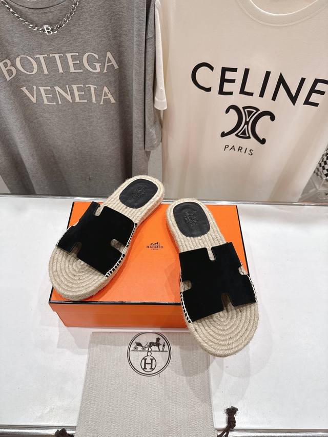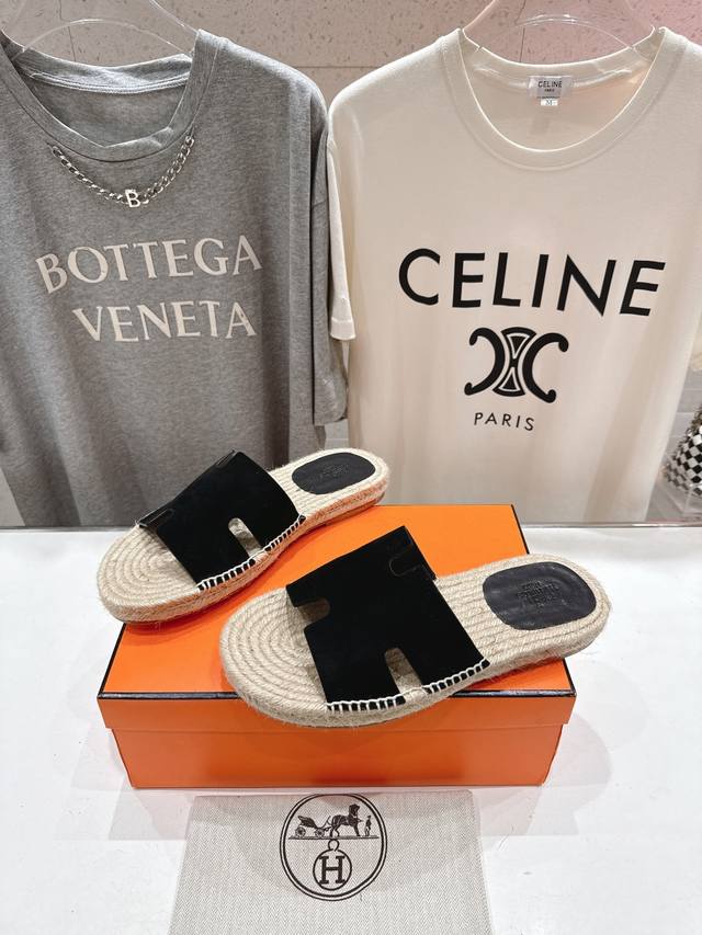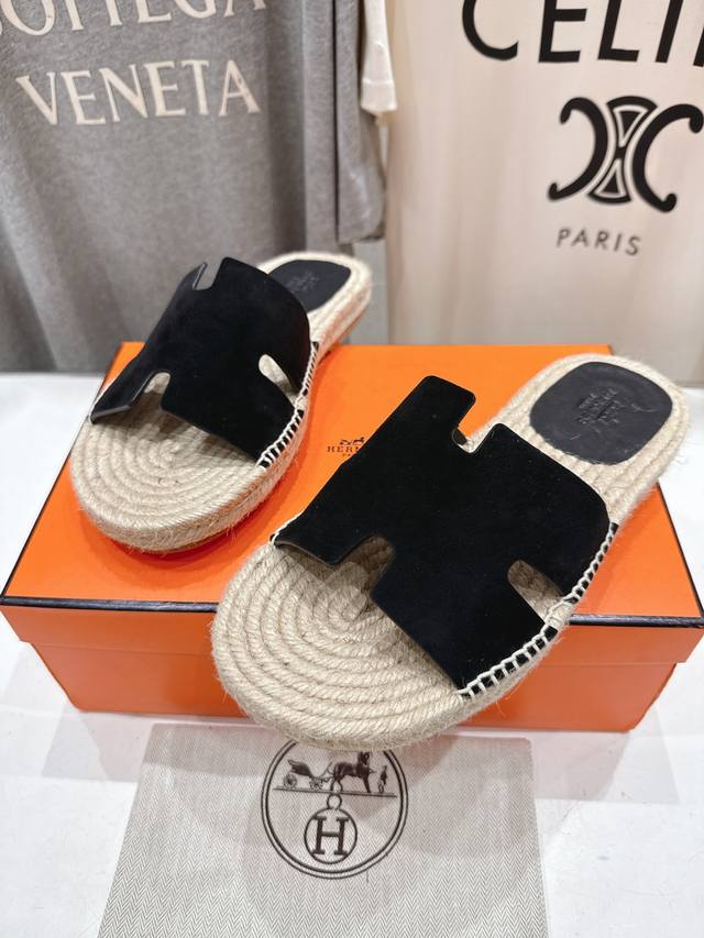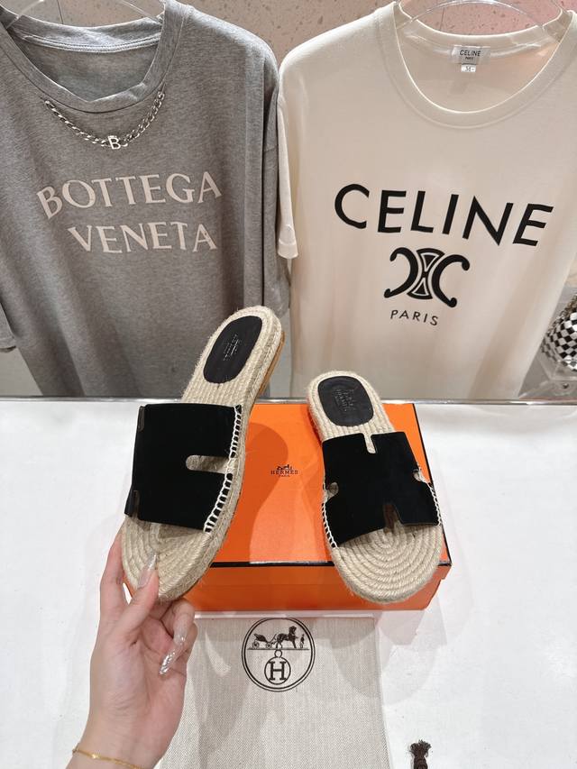 FFF 高版本出厂 DDD Hermes*爱马仕H家F050 2026Ss最新升级版情侣款麻绳底平底H拖鞋 DDD 度假旅游必备神器#由爱马仕首席设计师Pierrehardy亲自打造经典高端鞋履系列## DDD 购入正品1:1拆解复刻按原版进口定制面料所有颜色均调试过N遍力求做到极致 DDD 鞋面采用进口原版一致头层牛皮 DDD 内里采用澳洲进口羊皮 DDD 手工编织麻绳中底 DDD 大底与原版一致意大利进口A级真皮底 DDD Size:35-46 女40.41.42男45 46可定做不退换 DDD
