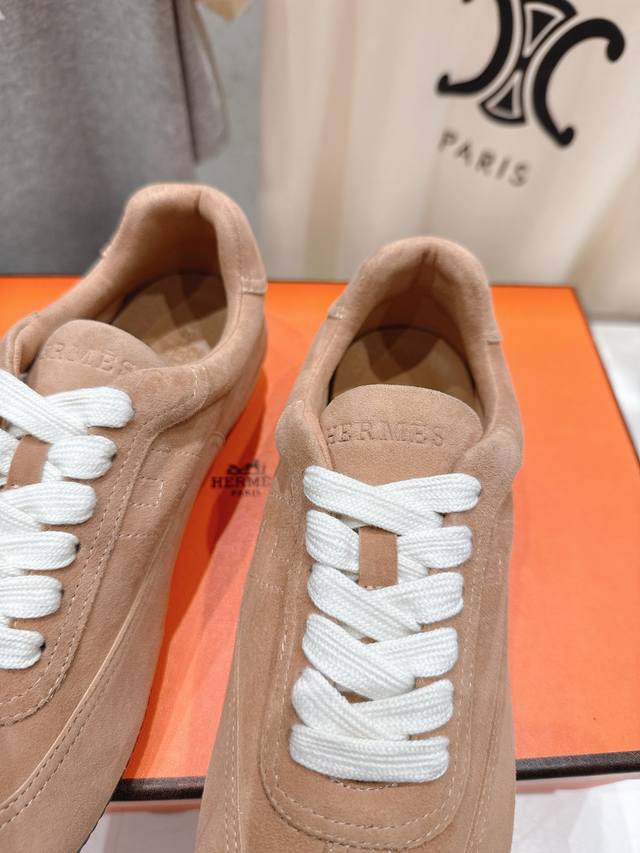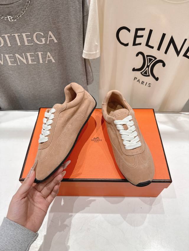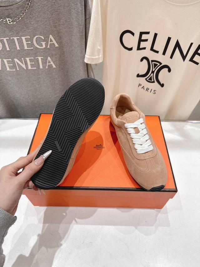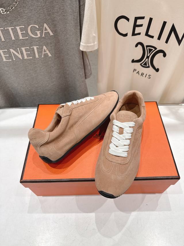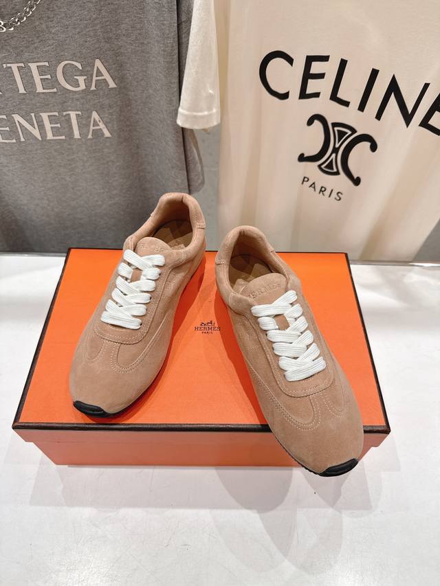 高版本出厂 Ddd Hermes 爱马仕H家F015 2026Ss新款系带休闲运动鞋跑步鞋阿甘鞋 Ddd 经典运动风格+英伦风拼色设计,经典耐看!原版倒模楦型,极致1:1形体,进口小牛皮呈现出精致质感!开模定制A级高密私模大底,奢华包装! Ddd 面料:原版定制高丝光反绒皮 Ddd 内里:原版定制羊皮 Ddd 垫脚:羊皮 Ddd 大底:原版开模Tpu大底 Ddd 码数:35-40 40订做不退换 DDD