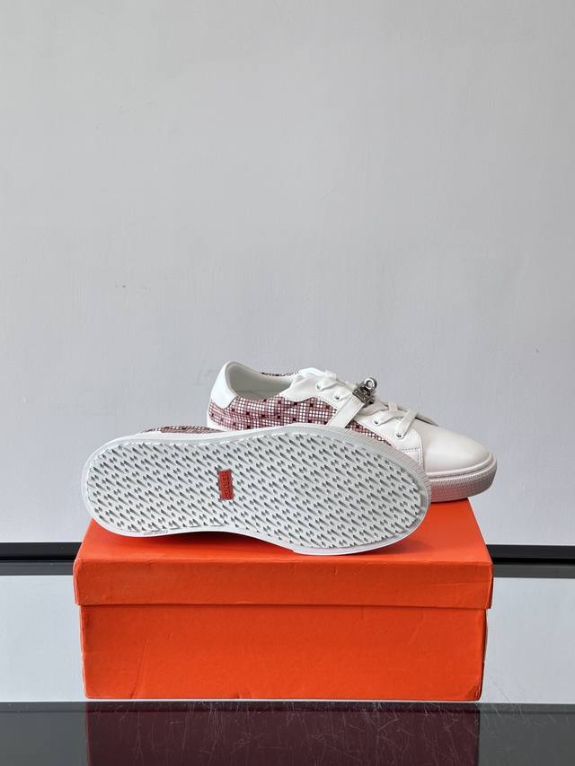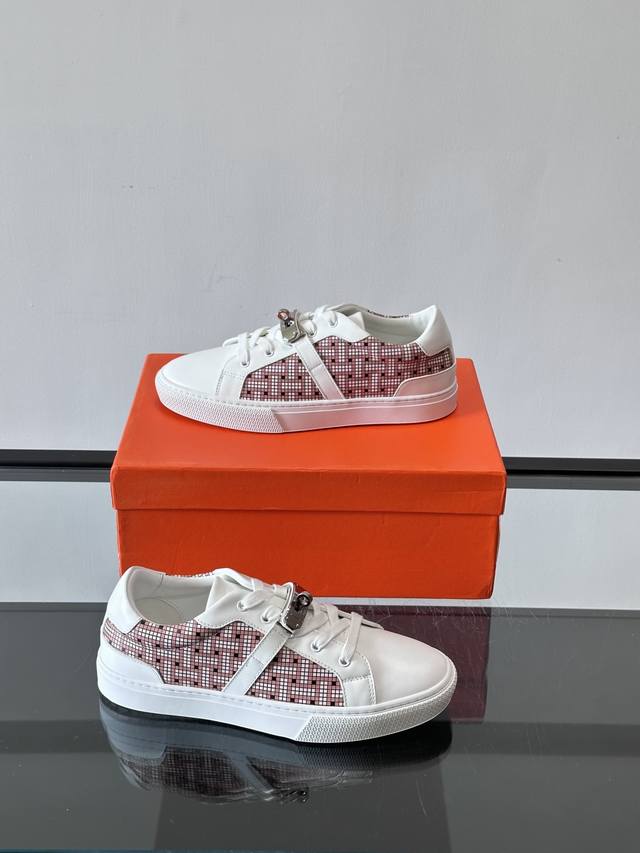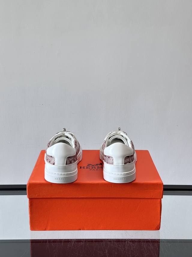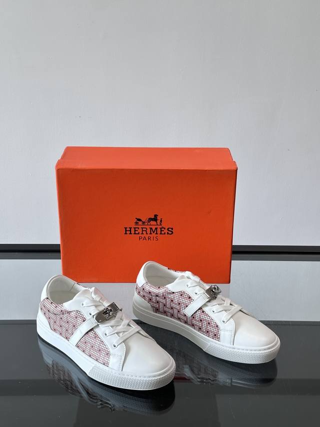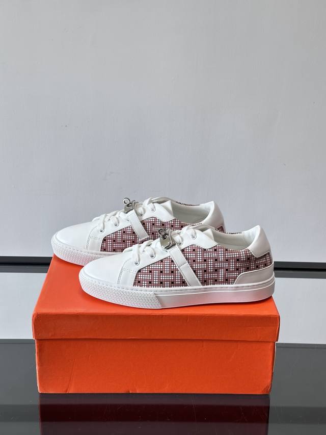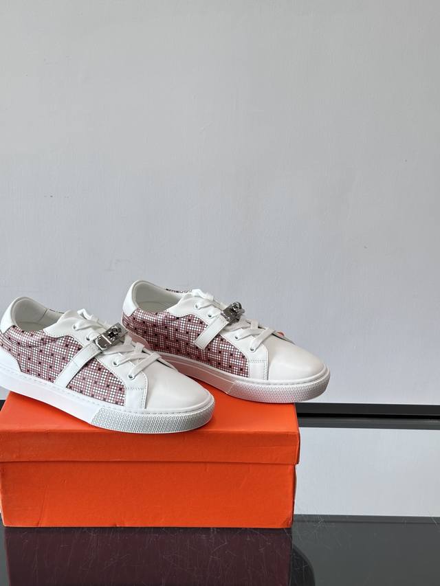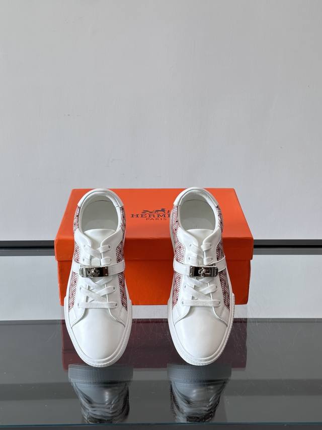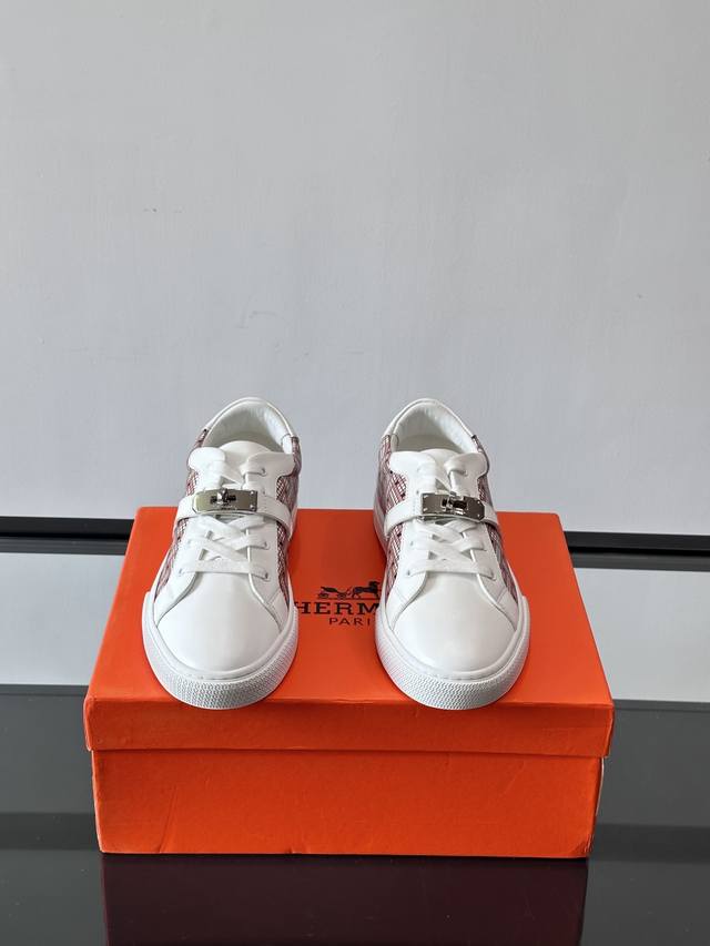 H爱马仕小白鞋运动鞋系列鞋真皮山羊皮运动鞋,搭配功能性镀钯Kelly鞋扣。打造时尚都市造型。 P: ,Size:38-44 45定制