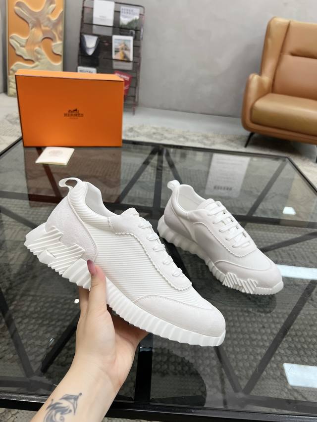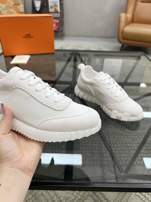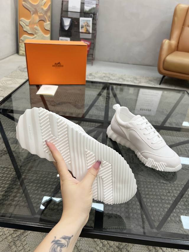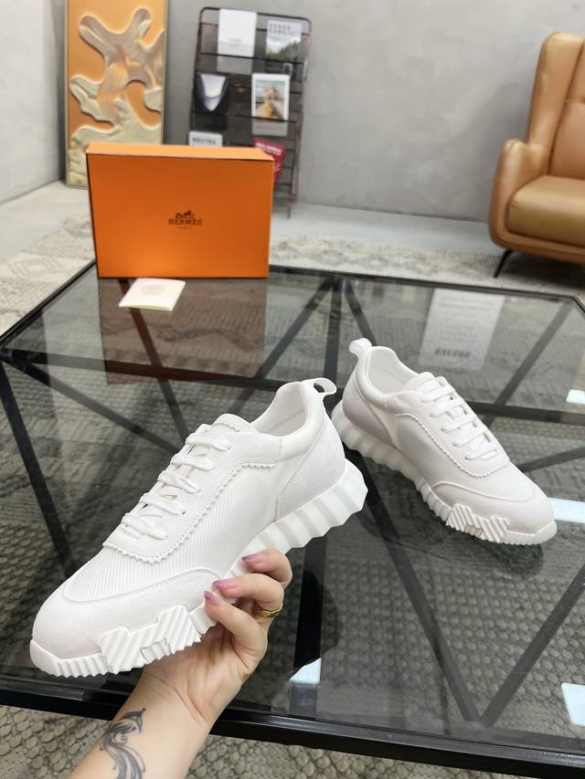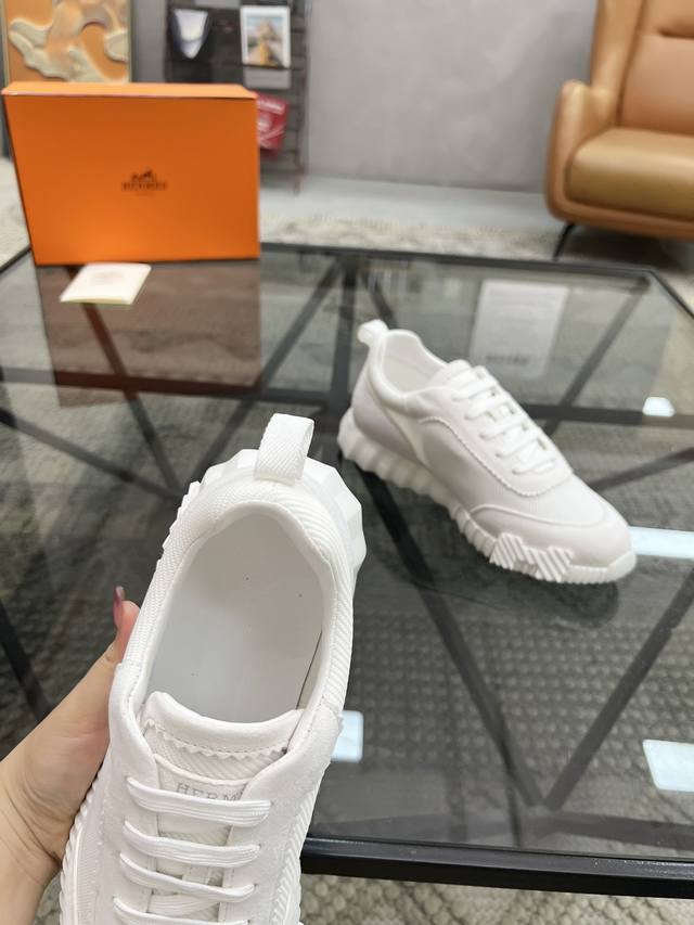H爱马仕Bouncing运动鞋,情侣款休闲运动鞋,鞋面小牛皮和网布拼接打造,进口材质,质感十足,轻盈鞋底装饰撞色图案,打造百搭时尚风格。 DDD Size:35-44 45定做 DDD