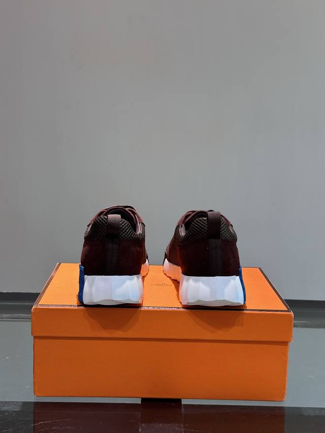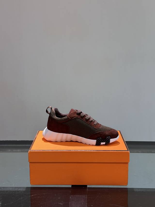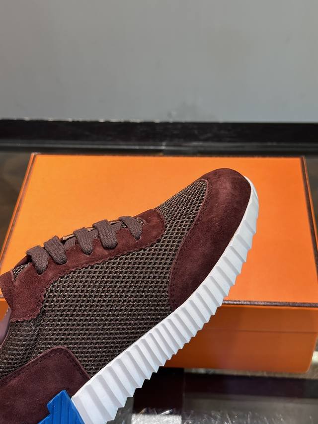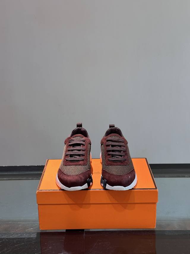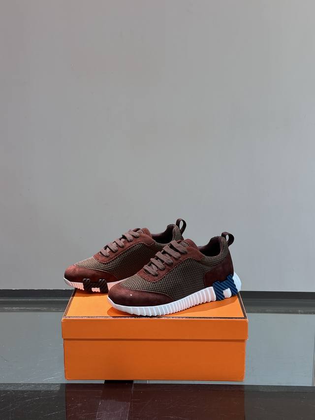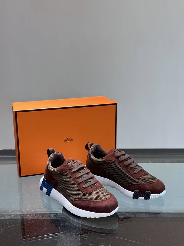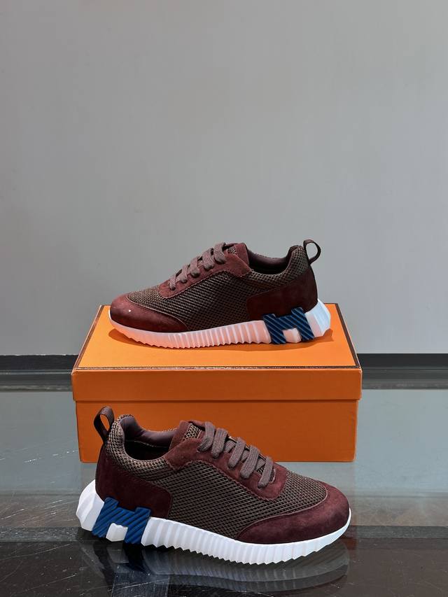 H爱马仕Bouncing运动鞋,情侣款休闲运动鞋,鞋面小牛皮和网布拼接打造,进口材质,质感十足,轻盈鞋底装饰撞色图案,打造百搭时尚风格。 DDD Size:35-44 45定做 DDD