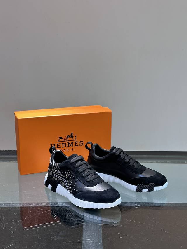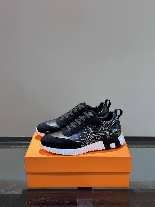 / H爱马仕Bouncing运动鞋,男士休闲运动鞋,鞋面小牛皮和麂皮山羊皮拼接打造,进口材质,质感十足,轻盈鞋底装饰撞色图案,打造百搭时尚风格。 Size:38-4