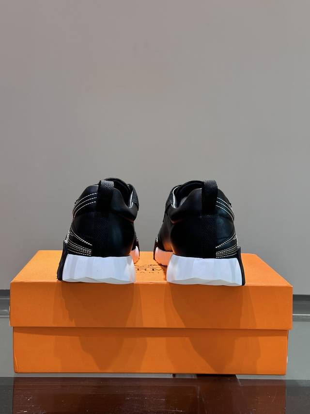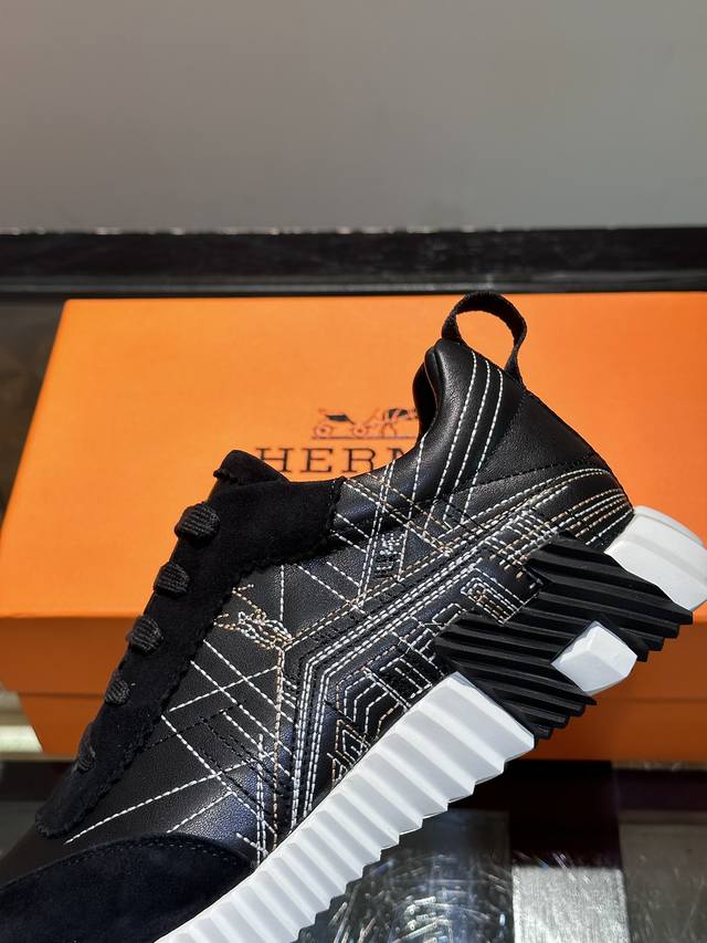 H爱马仕Bouncing运动鞋,男士休闲运动鞋,鞋面小牛皮和麂皮山羊皮拼接打造,进口材质,质感十足,轻盈鞋底装饰撞色图案,打造百搭时尚风格。 Size:38-4