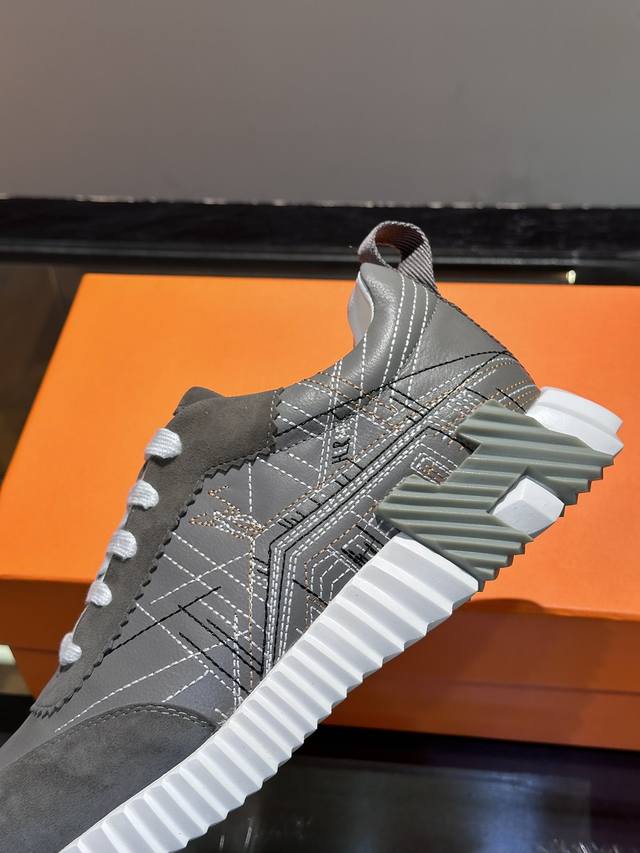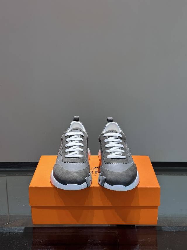 H爱马仕Bouncing运动鞋,男士休闲运动鞋,鞋面小牛皮和麂皮山羊皮拼接打造,进口材质,质感十足,轻盈鞋底装饰撞色图案,打造百搭时尚风格。 Size:38-4