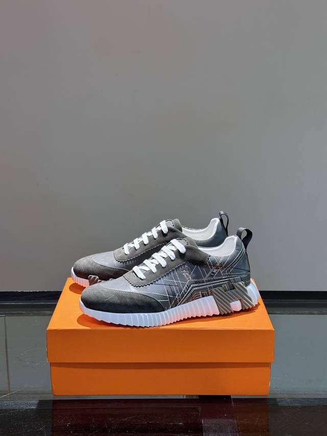 H爱马仕Bouncing运动鞋,男士休闲运动鞋,鞋面小牛皮和麂皮山羊皮拼接打造,进口材质,质感十足,轻盈鞋底装饰撞色图案,打造百搭时尚风格。 DDD Size:38-44 DDD