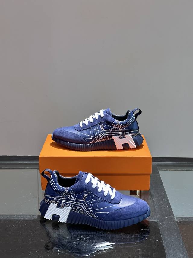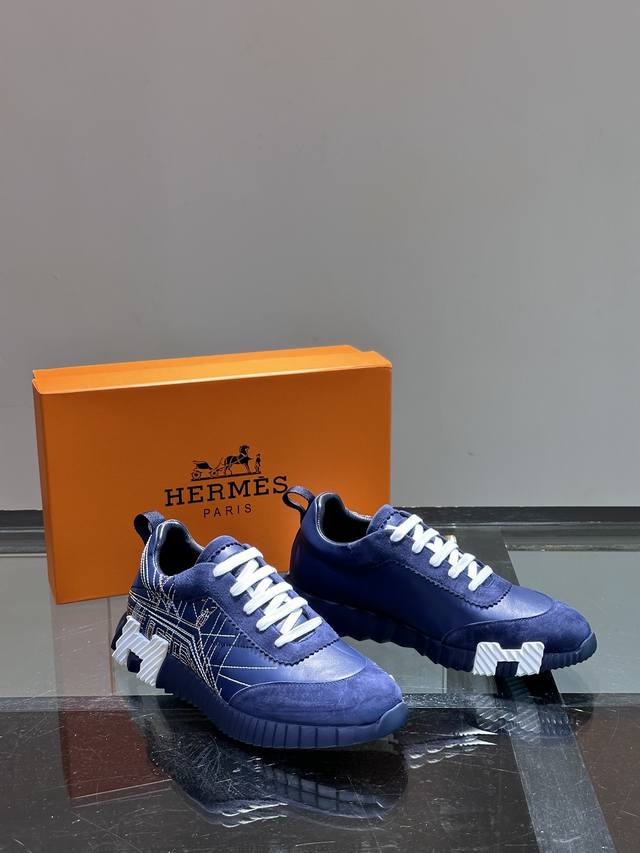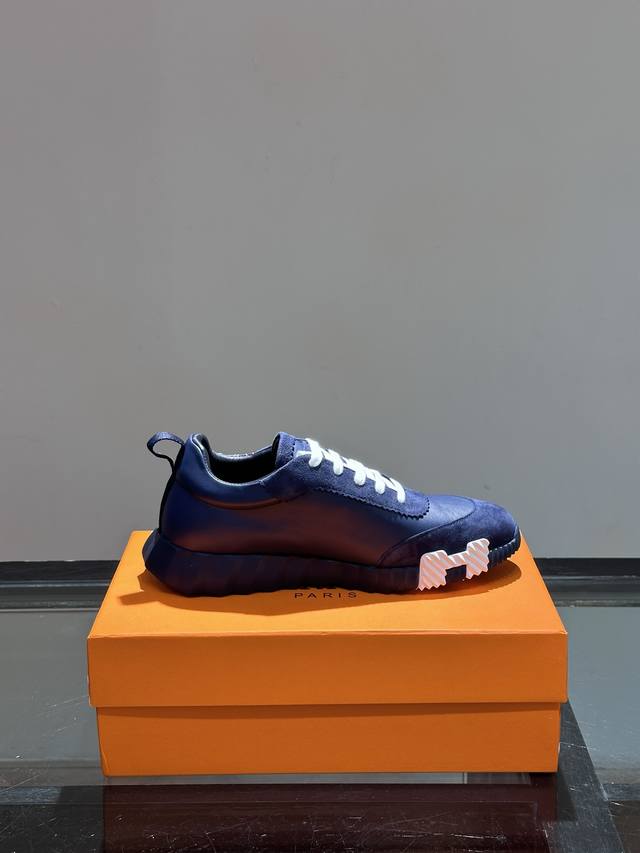 / H爱马仕Bouncing运动鞋,男士休闲运动鞋,鞋面小牛皮和麂皮山羊皮拼接打造,进口材质,质感十足,轻盈鞋底装饰撞色图案,打造百搭时尚风格。 Size:38-4