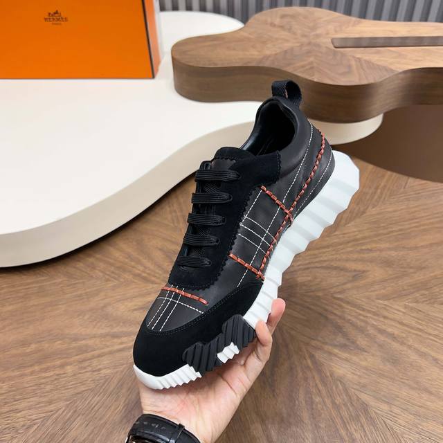 H爱马仕Bouncing运动鞋,男士休闲运动鞋,鞋面小牛皮拼接打造,进口材质,质感十足,轻盈鞋底装饰撞色图案,打造百搭时尚风格。 Size:39-44 38 4