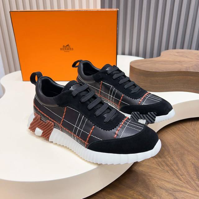 / H爱马仕Bouncing运动鞋,男士休闲运动鞋,鞋面小牛皮拼接打造,进口材质,质感十足,轻盈鞋底装饰撞色图案,打造百搭时尚风格。 Size:39-44 38 4