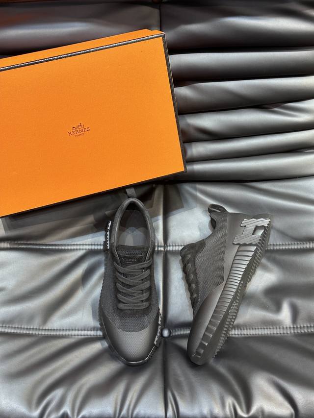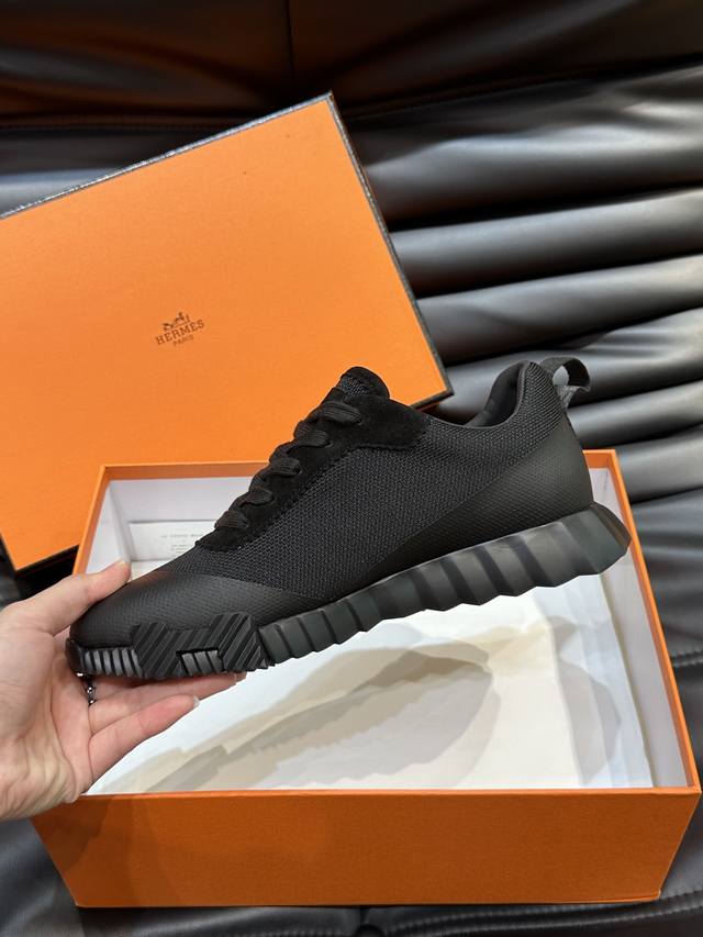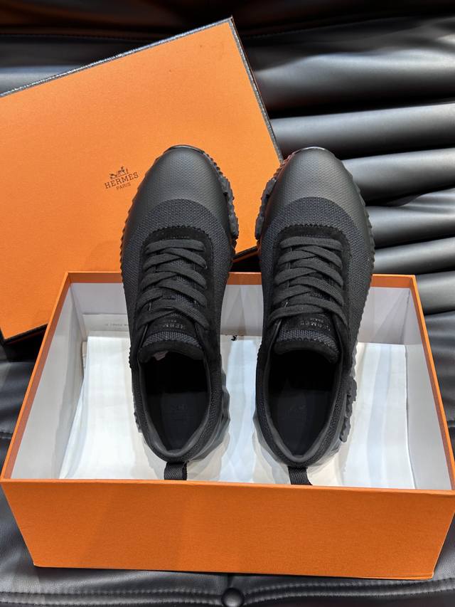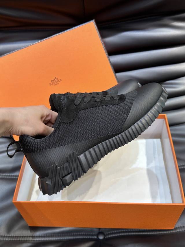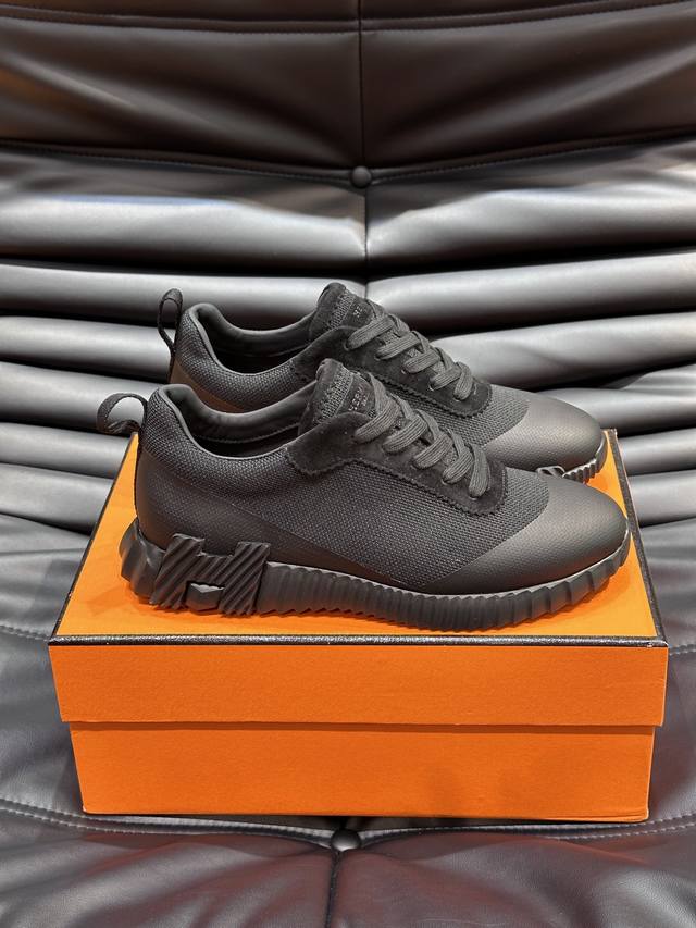 H爱马仕Bouncing运动鞋,男士休闲运动鞋,鞋面牛皮拼接高端网布打造,进口材质,质感十足,轻盈鞋底装饰撞色图案,打造百搭时尚风格。 DDD Size:38-44 DDD