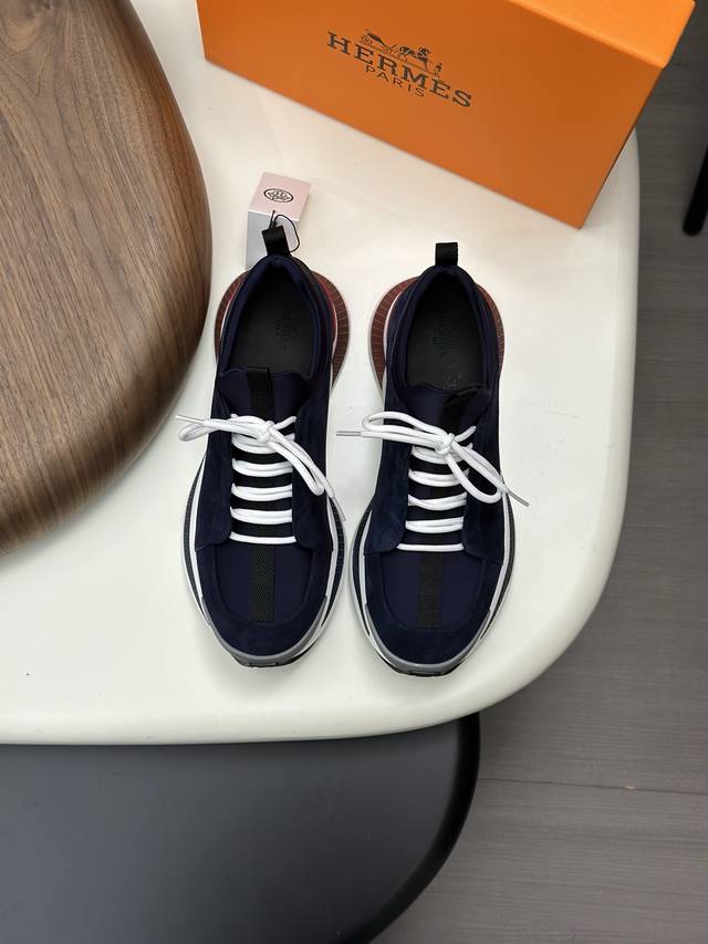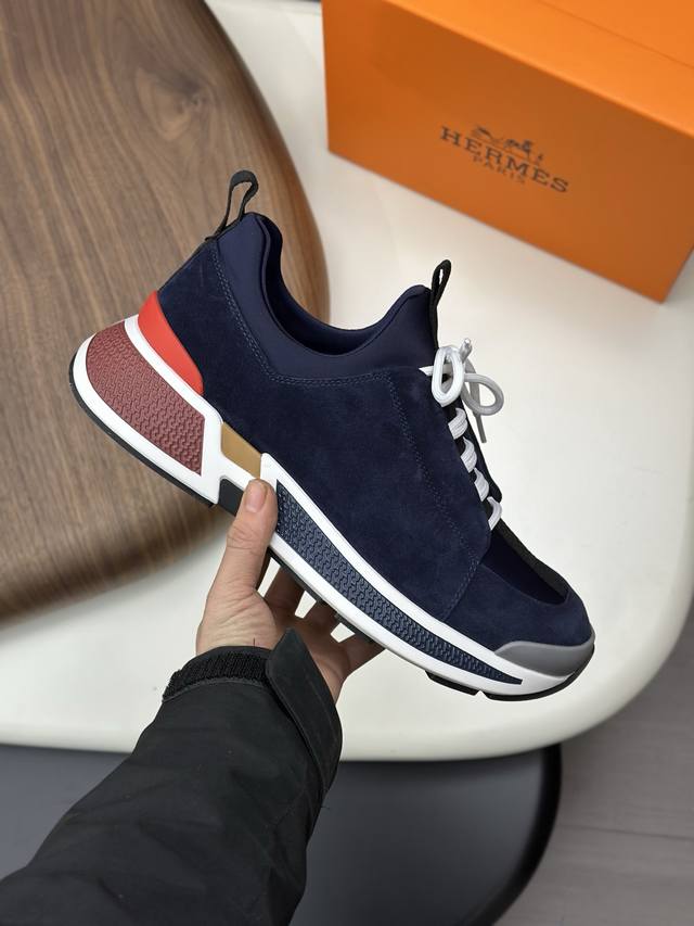 / H爱马仕Bouncing运动鞋,男士休闲运动鞋,鞋面进口小牛皮拼接头层磨砂牛皮打造,进口材质,质感十足,轻盈鞋底装饰撞色图案,打造百搭时尚风格。 DDD Siz