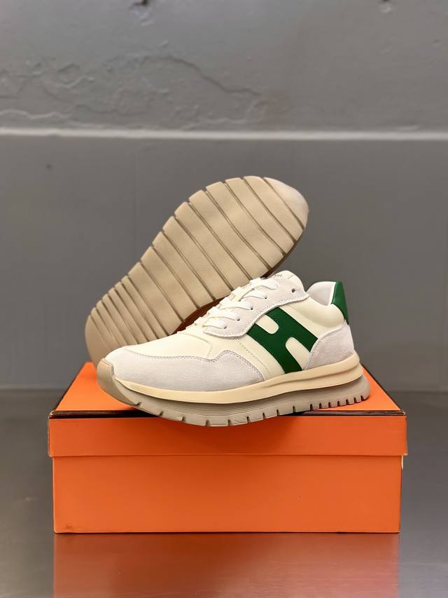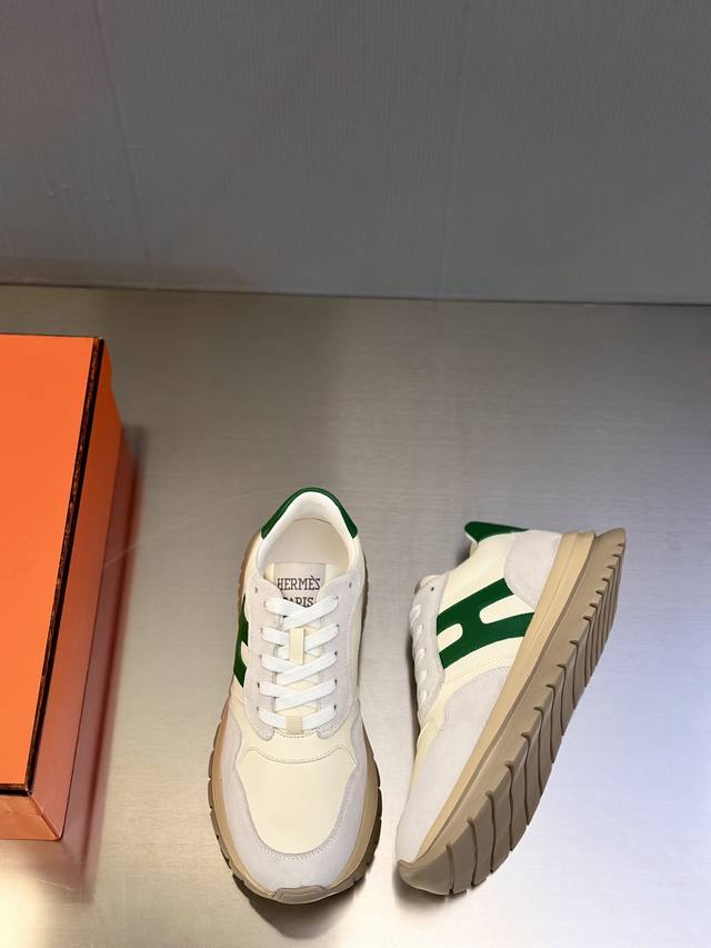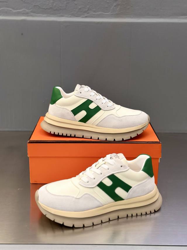 H 爱马仕 男鞋运动鞋,进口透气网面、氯丁橡胶 各种材质拼接打造,鞋面采用鞋带和橡胶嵌件设计,后跟Moncler标志,大底采用Tpu+橡胶+高弹橡胶发泡组合成型,具有高弹性高耐磨性,提高舒适性,无论是鞋面还是颜色设计都值得入手!Size:39-44 38 45定做 DDD