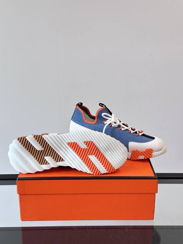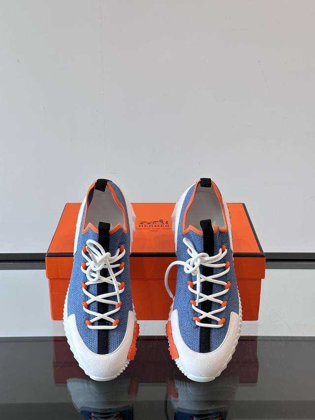 Herme* 爱马仕高端男士时尚休闲运动鞋,精工打造,定制进口飞织制作,叠层设计鞋面线条感层次分明,羊皮内里脚垫,轻质橡胶大底。轻奢风格,复古的舒适圆头,鞋面透气不闷脚,简约大气,上脚舒适富有潮流感。 Ddd Size:38-44 45.46定制 DDD