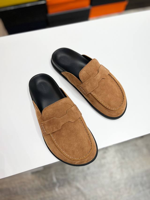 爱玛仕 25 2025春夏新品 顶级版本经典H型Oran粗跟拖鞋系列 鞋面:原版特定牛皮 内里:进口混种羊皮 大底:原版意大利真皮大底...