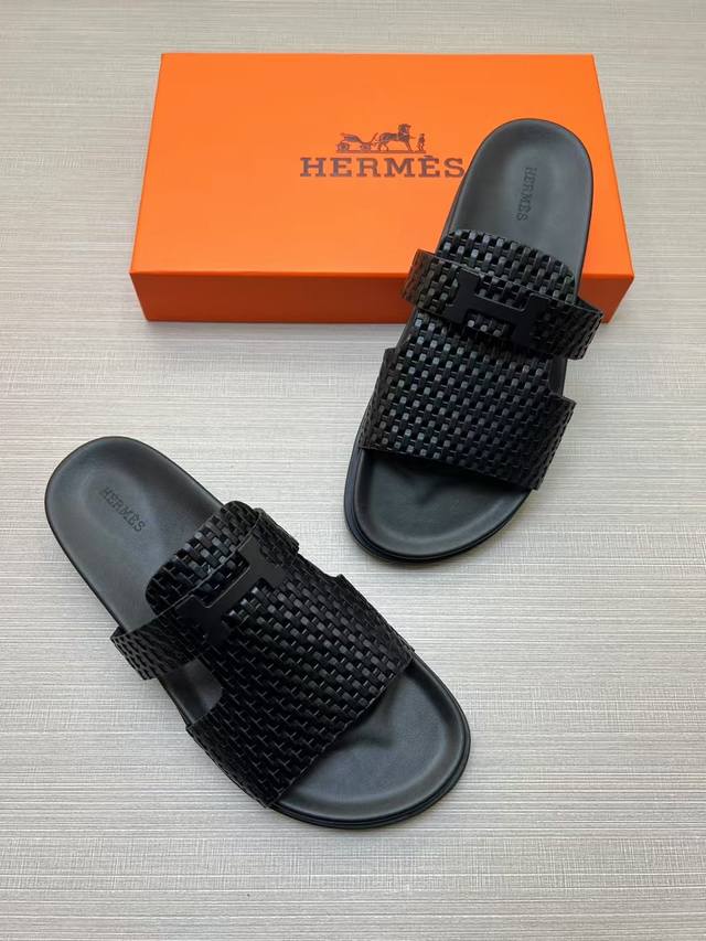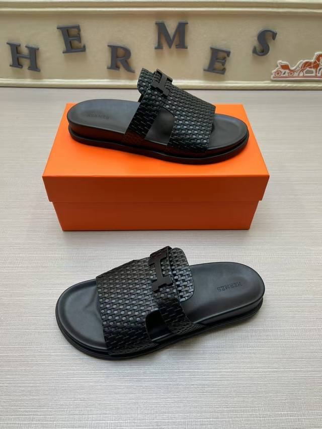 飞机盒另加10 * 爱玛仕 25 2025春夏新品 顶级版本经典H型Oran粗跟拖鞋系列 鞋面:原版特定牛皮 内里:进口混种羊皮...
