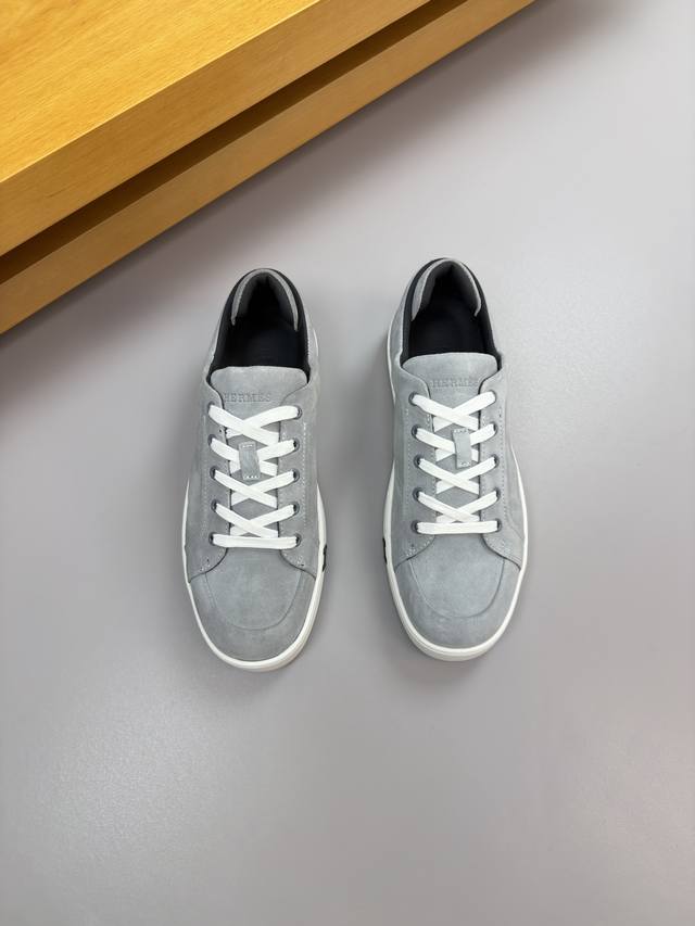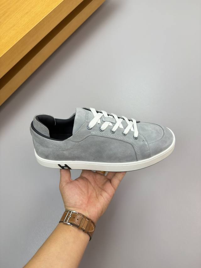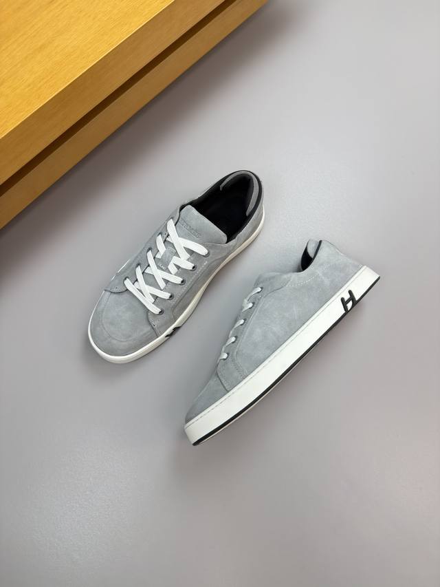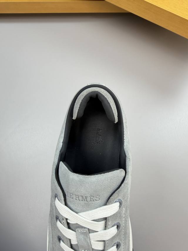 / Hermes 爱马仕 -高端品质 原单 休闲运动板鞋 -鞋面:反绒小牛皮、车反暗线工艺、后跟包棉块.增加舒适度 -内里:水染牛皮 -大底:超轻原版Tpr.橡胶