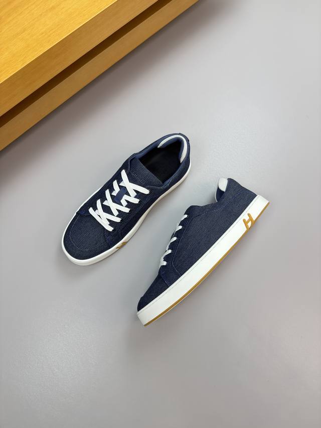 Hermes 爱马仕 -高端品质 原单 休闲运动板鞋 -鞋面:品牌帆布布匹、车反暗线工艺、后跟包棉块.增加舒适度 -内里:水染牛皮 -大底:超轻原版Tpr.橡胶