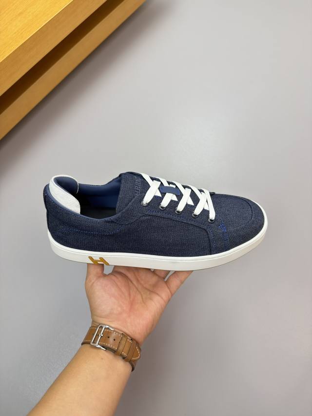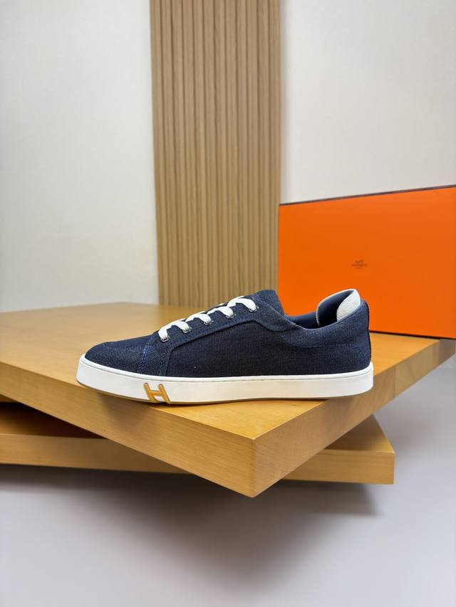 / Hermes 爱马仕 -高端品质 原单 休闲运动板鞋 -鞋面:品牌帆布布匹、车反暗线工艺、后跟包棉块.增加舒适度 -内里:水染牛皮 -大底:超轻原版Tpr.橡胶