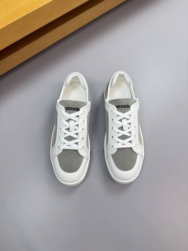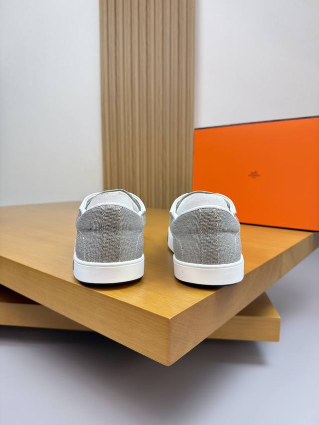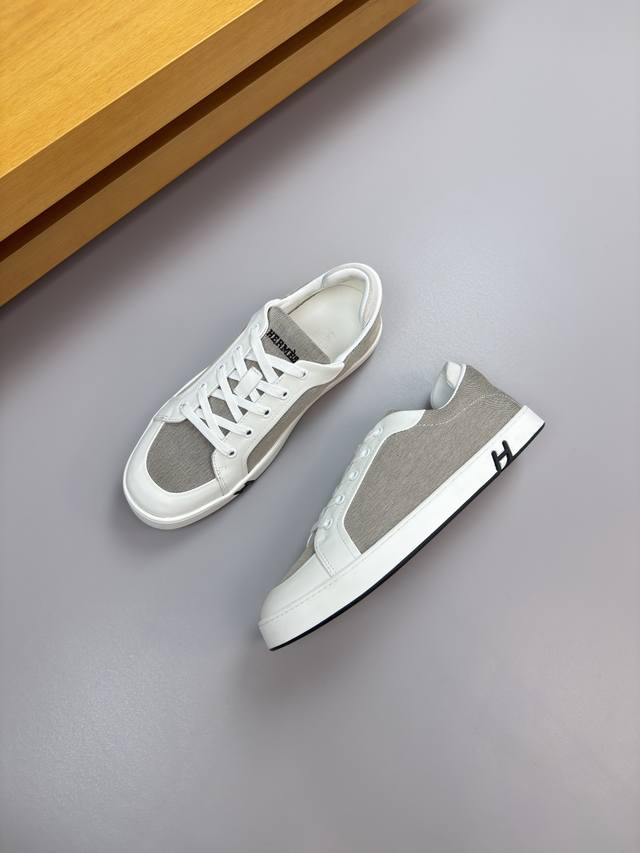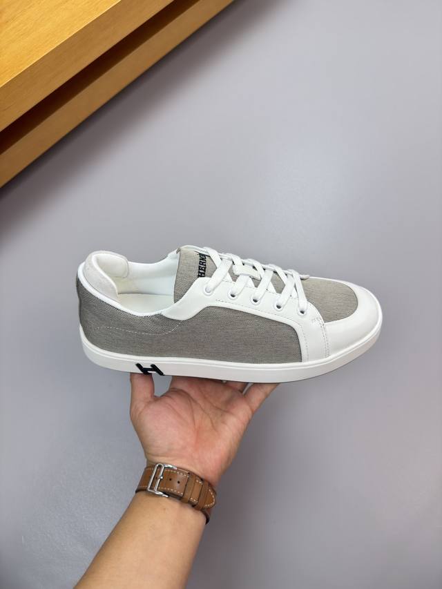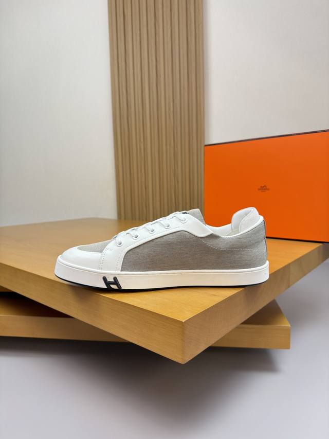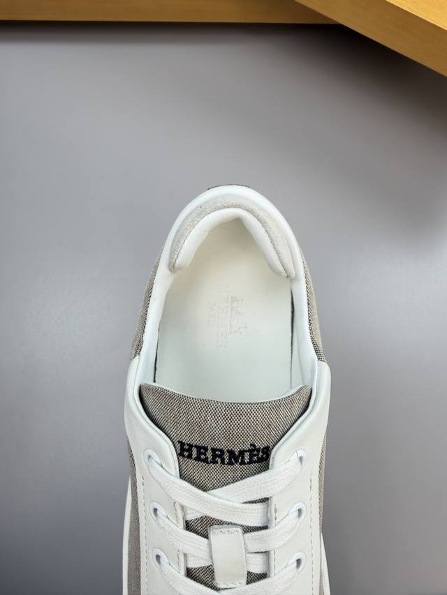 / Hermes 爱马仕 -高端品质 原单 休闲运动板鞋 -鞋面:纳帕小牛皮、品牌帆布布匹、车反暗线工艺、后跟包棉块.增加舒适度 -内里:水染牛皮 -大底:超轻原版