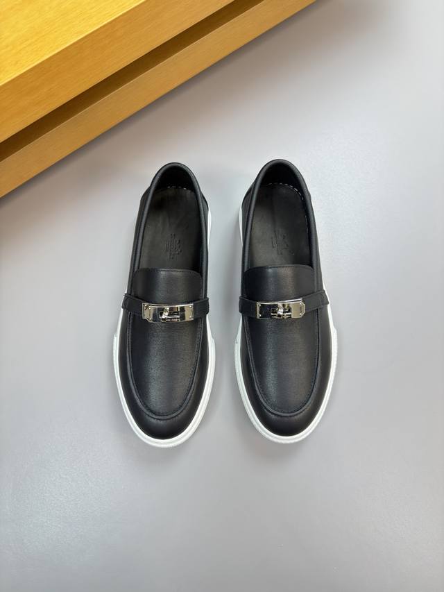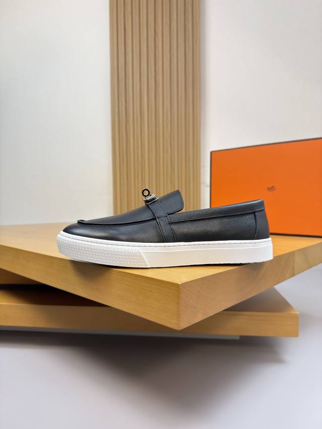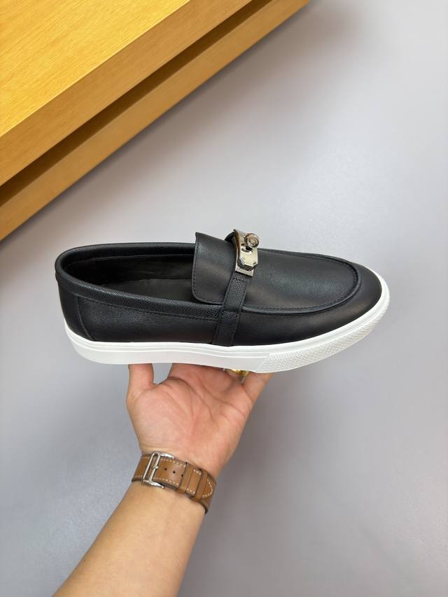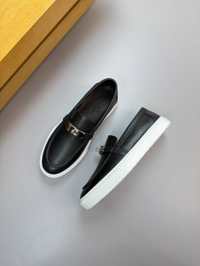 Hermes 爱马仕 DDD -高端品质 原单 休闲运动板鞋 DDD -鞋面:纳帕小牛皮、手掌纹小牛皮、鞋丹外合车缝线工艺、品牌金属扣件装饰 DDD -内里:水染牛皮 DDD -大底:超轻原版Tpr.橡胶 双色成型大底 DDD -超高品控 做工精细:凸显 高端 贵气 档次 DDD -Size :38-44 45,可订做 H0116 DDD