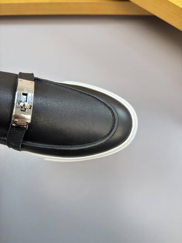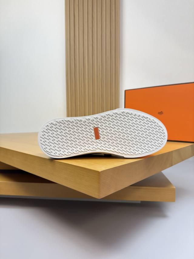Hermes 爱马仕 -高端品质 原单 休闲运动板鞋 -鞋面:纳帕小牛皮、手掌纹小牛皮、鞋丹外合车缝线工艺、品牌金属扣件装饰 -内里:水染牛皮 -大底:超轻原版