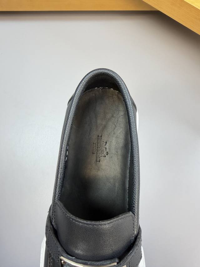 爱马仕官方旗舰店时尚商务休闲豆豆鞋鞋面意大利进口头层牛漆皮+刺绣,内里头层杏色羊皮里,透气舒适 拒绝脱色磨脚...