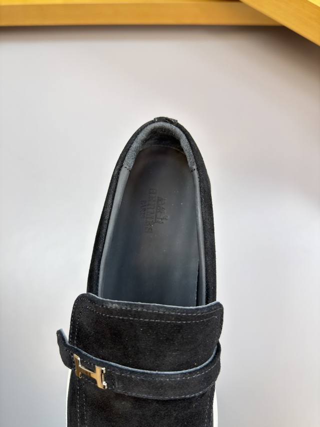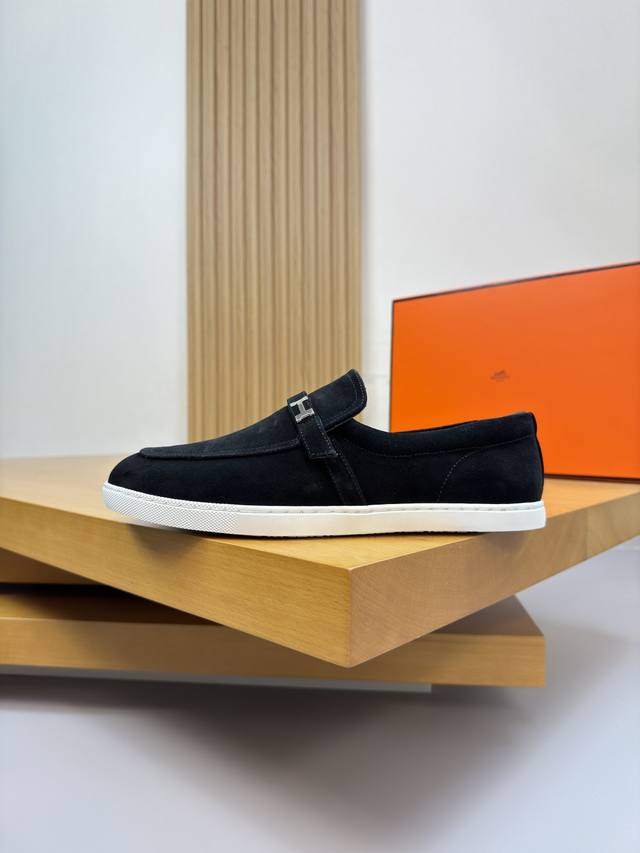 Hermes 爱马仕 Ddd -高端品质 原单 休闲运动板鞋 Ddd -鞋面:高丝光反绒小牛皮、品牌金属扣件、后跟包棉块.增加舒适度 Ddd -内里:水染牛皮 Ddd -大底:超轻原版Tpr.橡胶;成型大底 Ddd -超高品控 做工精细:凸显 高端 贵气 档次 Ddd -Size :39-44 38.45.46.可订做 H0231 DDD