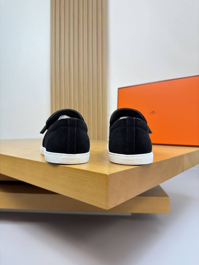/ Hermes 爱马仕 -高端品质 原单 休闲运动板鞋 -鞋面:高丝光反绒小牛皮、品牌金属扣件、后跟包棉块.增加舒适度 -内里:水染牛皮 -大底:超轻原版Tpr.
