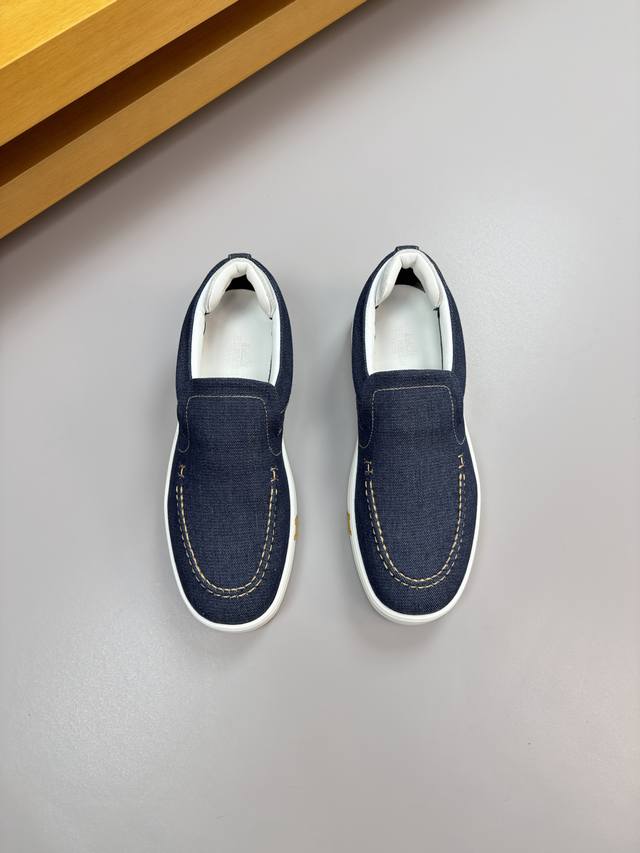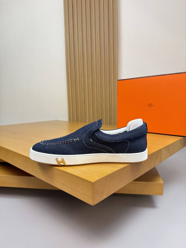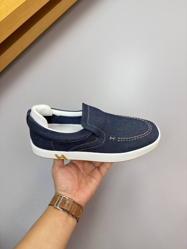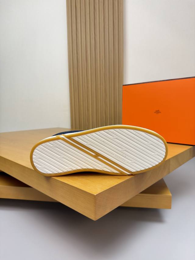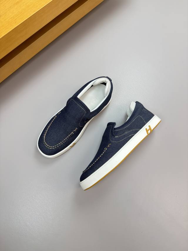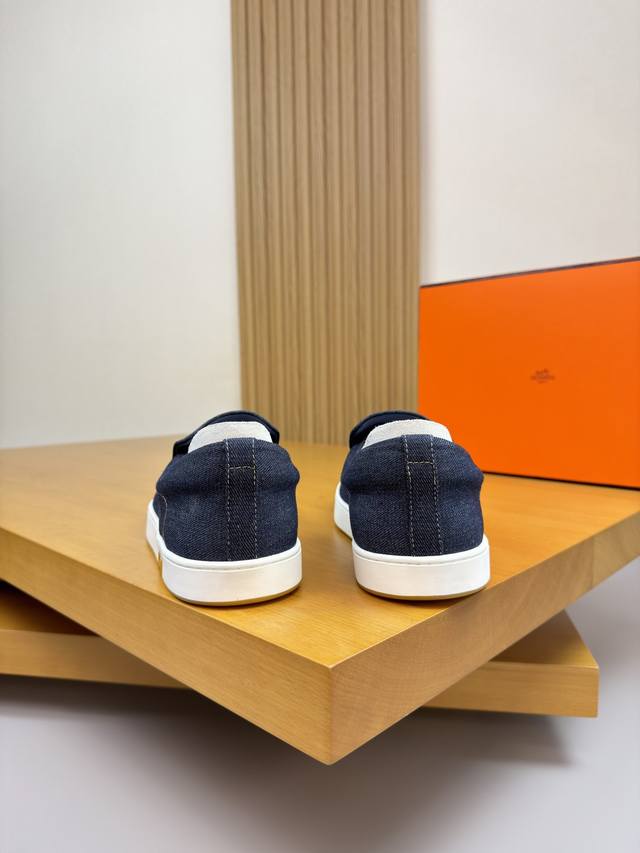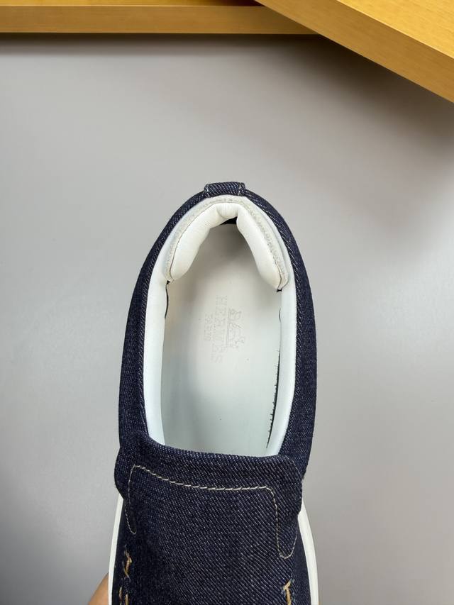 Hermes 爱马仕 -高端品质 原单 套脚休闲运动板鞋 -鞋面:品牌帆布布匹、鞋口品牌松紧带、鞋丹起股车缝线、一脚蹬后跟包棉块.增加舒适度 -内里:水染牛皮