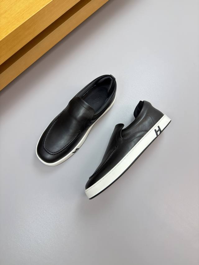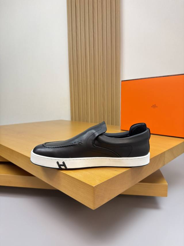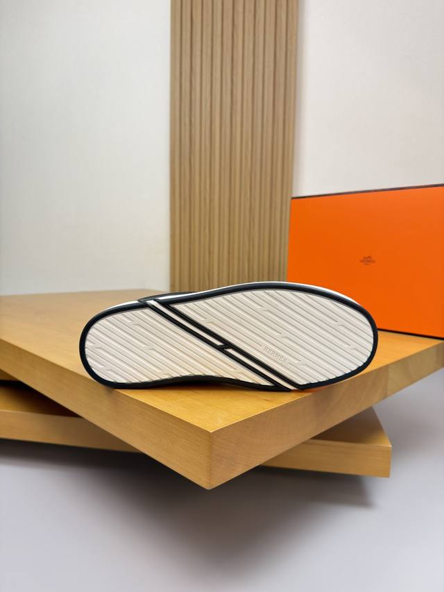 / Hermes 爱马仕 -高端品质 原单 套脚休闲运动板鞋 -鞋面:纳帕小牛皮、鞋口品牌松紧带、鞋丹起股车缝线、一脚蹬后跟包棉块.增加舒适度 -内里:水染牛皮 -