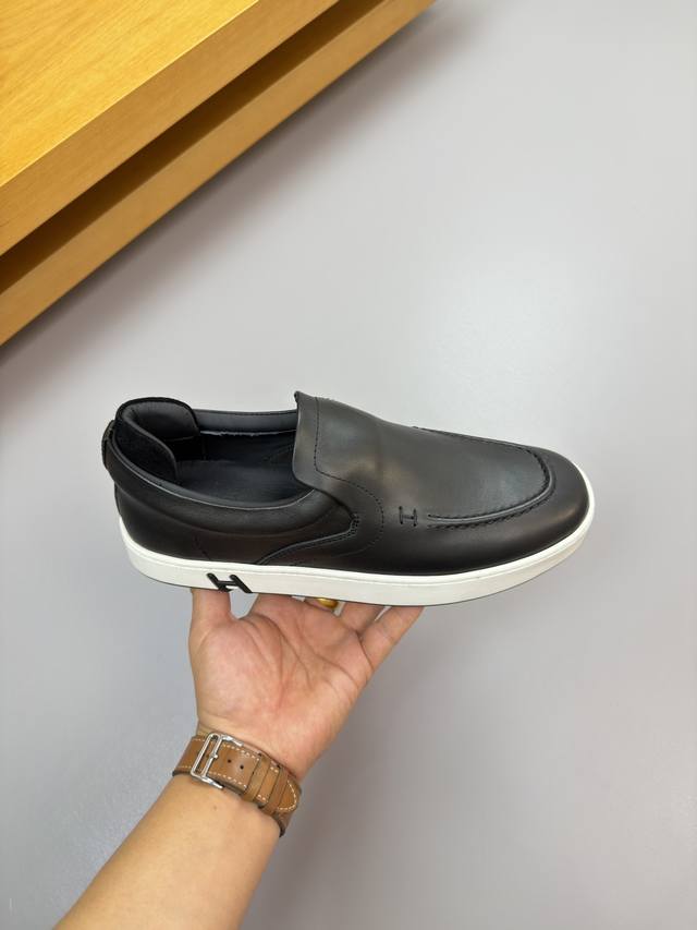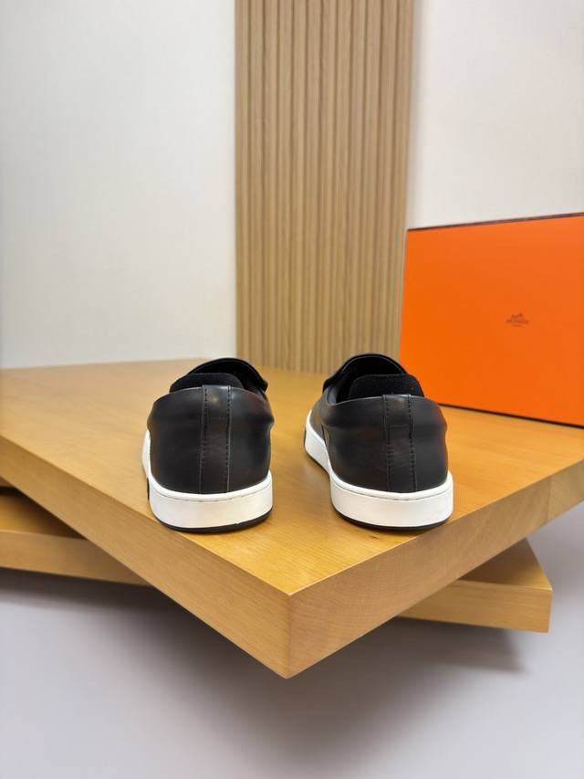 Hermes 爱马仕 -高端品质 原单 套脚休闲运动板鞋 -鞋面:纳帕小牛皮、鞋口品牌松紧带、鞋丹起股车缝线、一脚蹬后跟包棉块.增加舒适度 -内里:水染牛皮 -