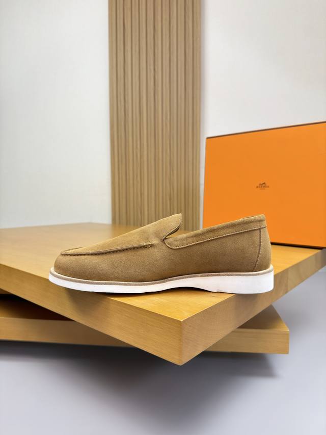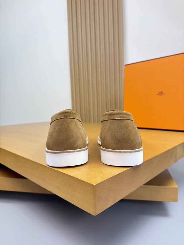 / Hermes 爱马仕 -高端品质 原单 套脚休闲鞋 -鞋面:高丝光反绒小牛皮、鞋丹外合车缝线、鞋舌空压品牌图腾、一脚蹬 -内里:水染牛皮 -大底:超轻耐磨绒 真
