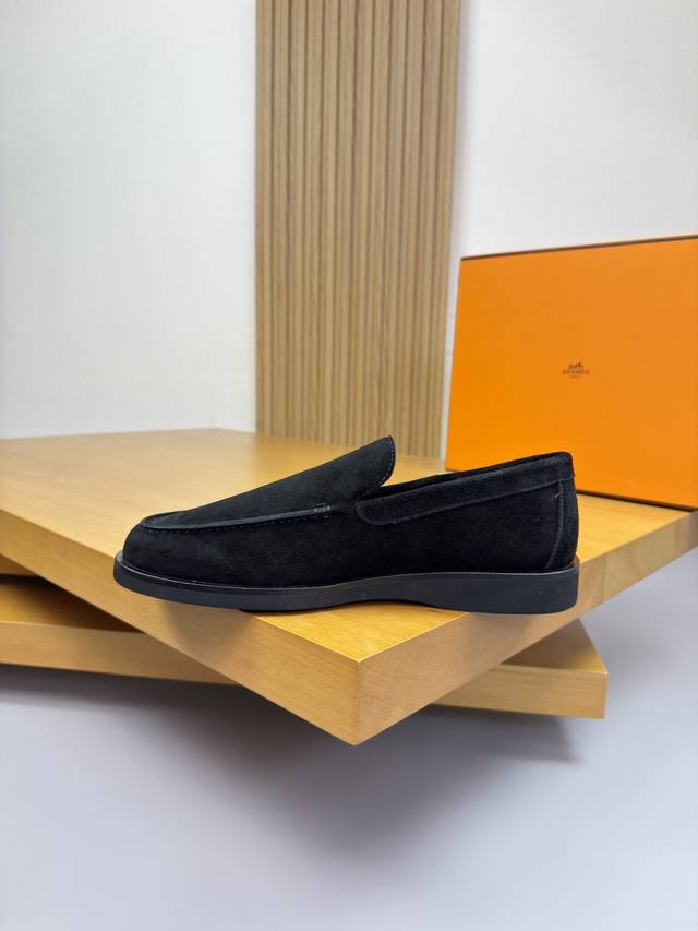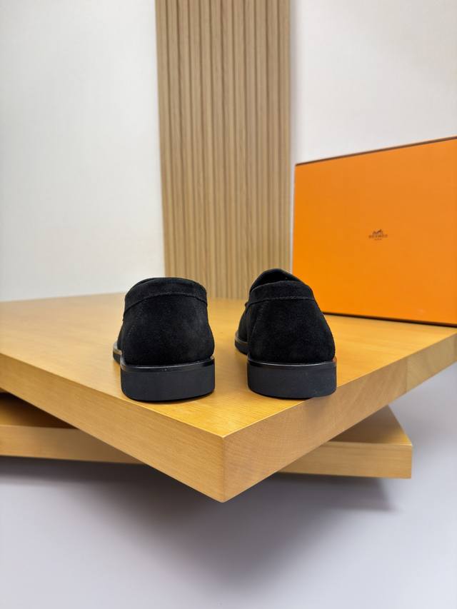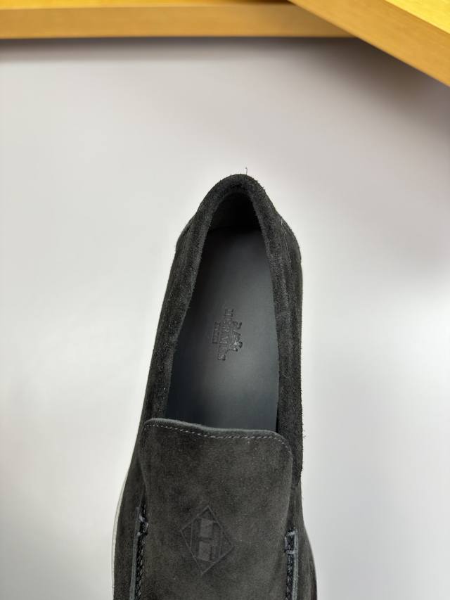 Hermes 爱马仕 -高端品质 原单 套脚休闲鞋 -鞋面:高丝光反绒小牛皮、鞋丹外合车缝线、鞋舌空压品牌图腾、一脚蹬 -内里:水染牛皮 -大底:超轻Tpu发泡