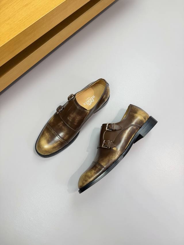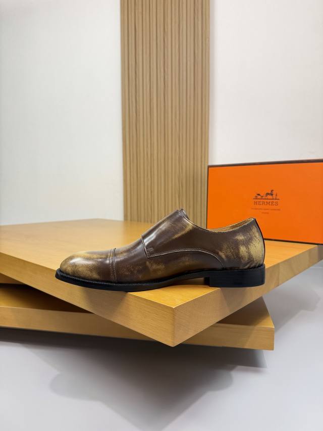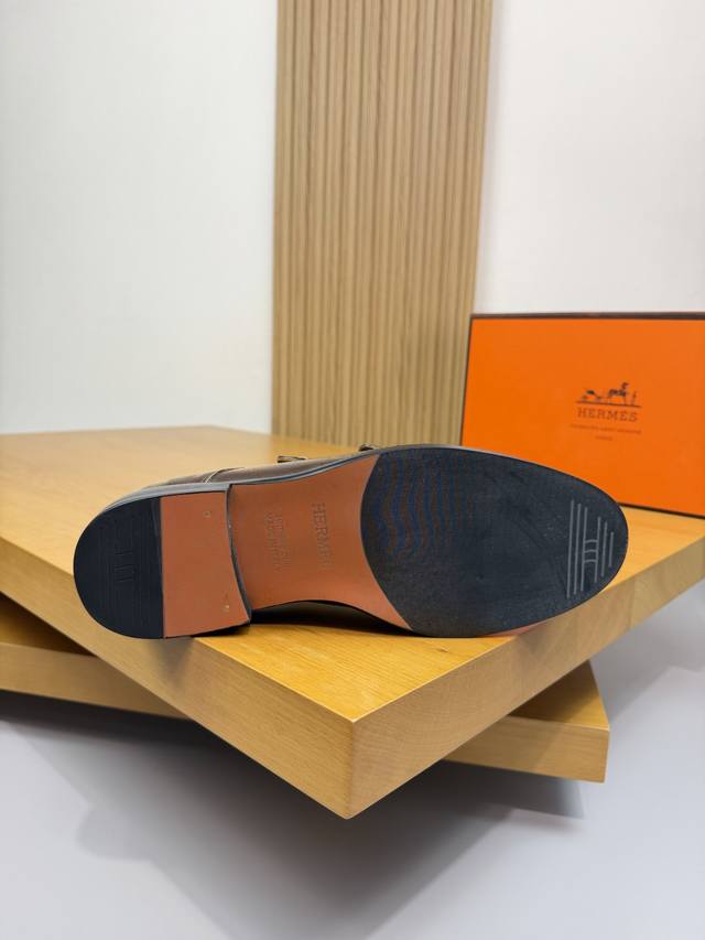 / Hermes 爱马仕 -高端品质 原单 正装皮鞋 -鞋面:开边珠擦色小牛皮、品牌金属扣件装饰 -内里:水染牛皮 -大底:超轻Tpr 橡胶;组合成型大底 -超高品