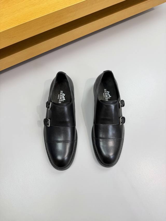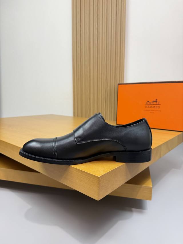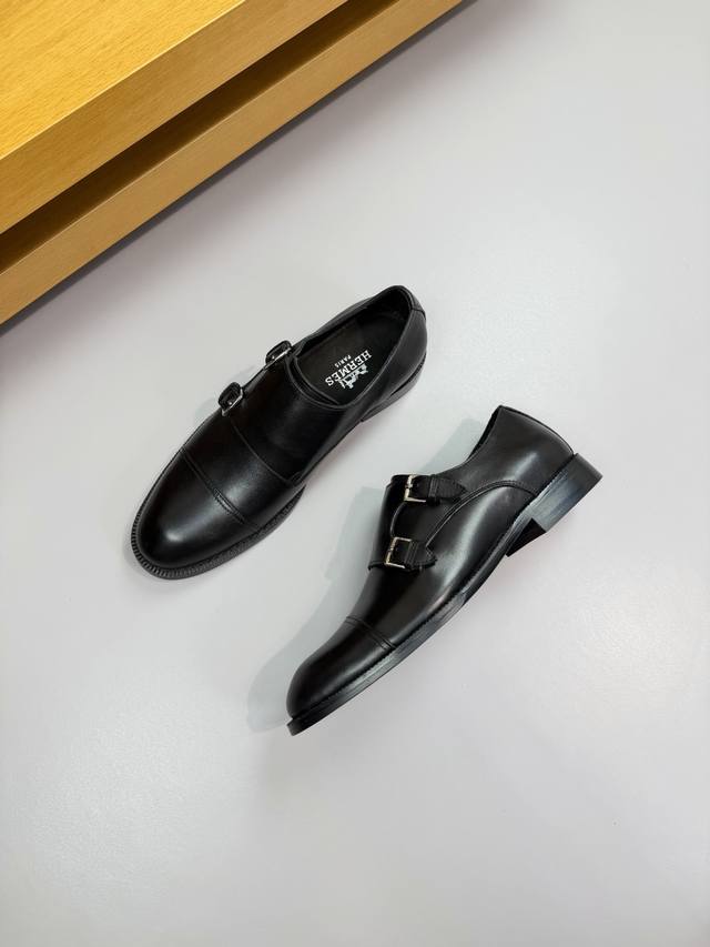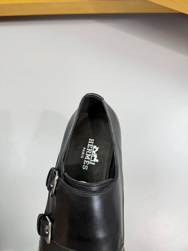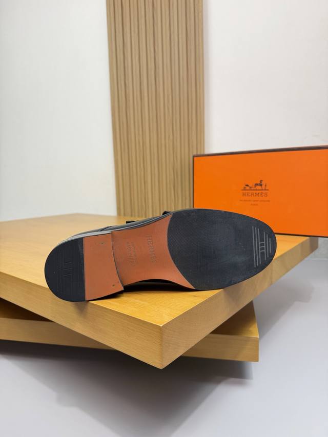 / Hermes 爱马仕 -高端品质 原单 正装皮鞋 -鞋面:纳帕小牛皮、品牌金属扣件装饰 -内里:水染牛皮 -大底:超轻Tpr 橡胶;组合成型大底 -超高品控 做