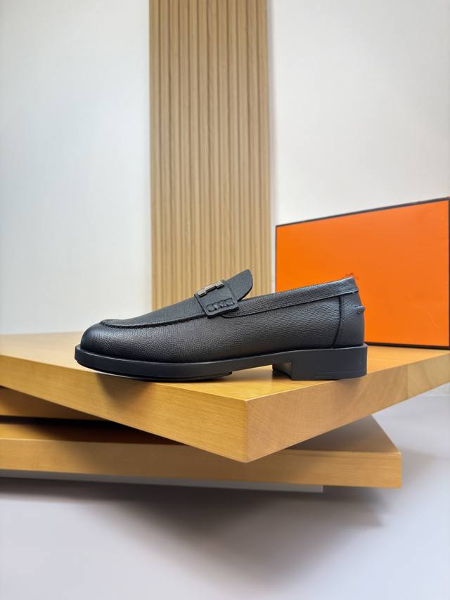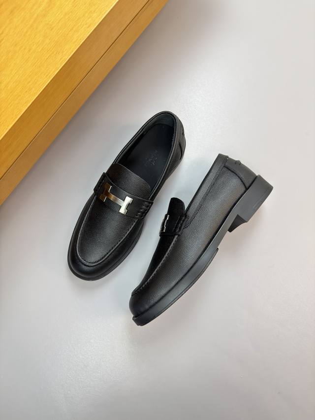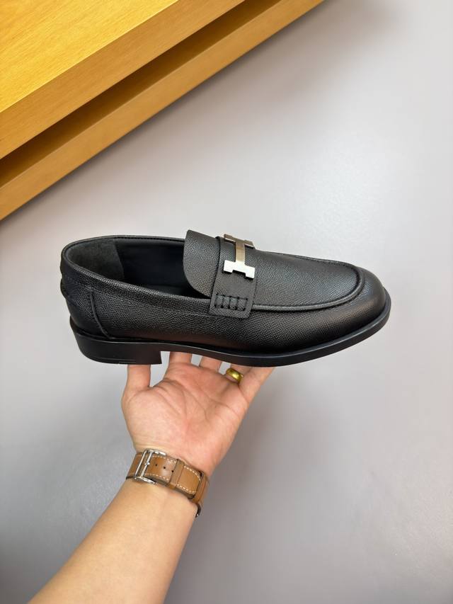 FFF Hermes 爱马仕 DDD -高端品质 原单 正装皮鞋 DDD -鞋面:手掌纹小牛皮、鞋丹起股车缝线、品牌金属扣件横担装饰 DDD -内里:水染牛皮 DDD -大底:超轻Tpr 橡胶;成型大底 DDD -超高品控 做工精细:凸显 高端 贵气 档次 DDD -Size :39-44 38,45,46,47,可订做 H0132 DDD