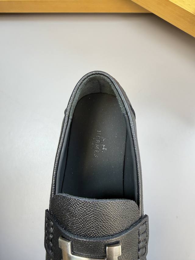 Hermes 爱马仕 DDD -高端品质 原单 正装皮鞋 DDD -鞋面:手掌纹小牛皮、鞋丹起股车缝线、品牌金属扣件横担装饰 DDD -内里:水染牛皮 DDD