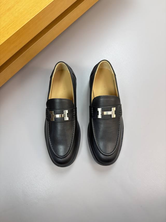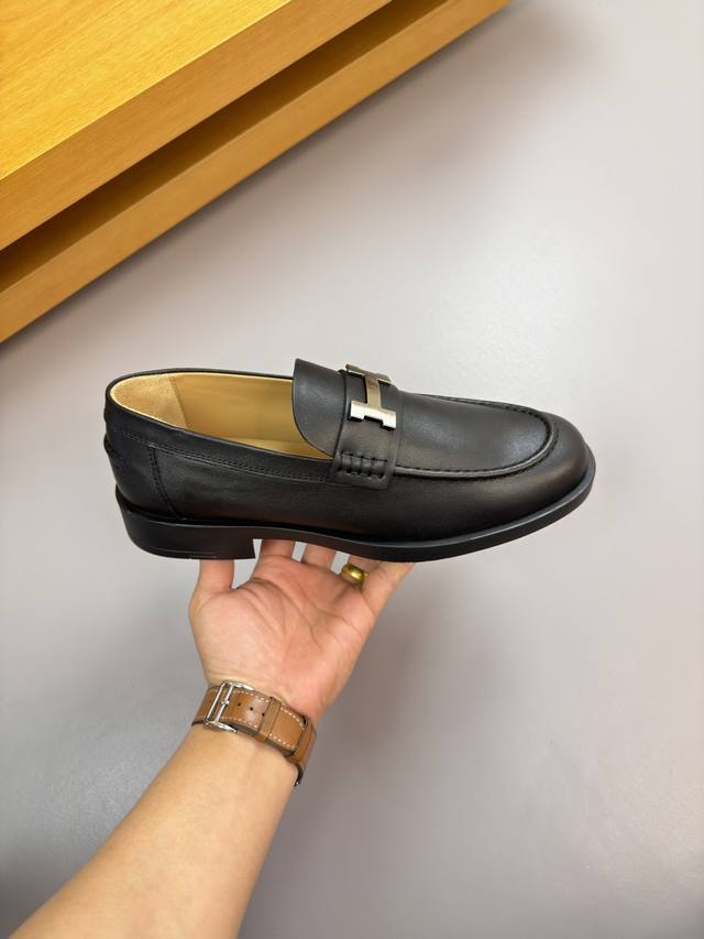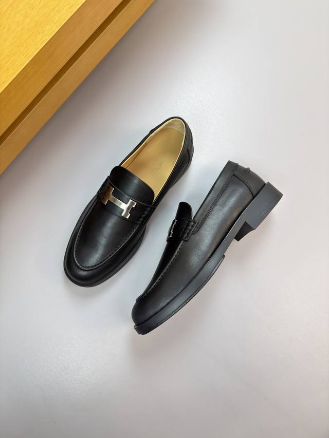 FFF Hermes 爱马仕 DDD -高端品质 原单 正装皮鞋 DDD -鞋面:纳帕小牛皮、鞋丹起股车缝线、品牌金属扣件横担装饰 DDD -内里:水染牛皮 DDD -大底:超轻Tpr 橡胶;成型大底 DDD -超高品控 做工精细:凸显 高端 贵气 档次 DDD -Size :39-44 38,45,46,47,可订做 H0132 DDD