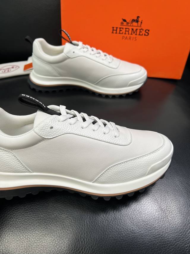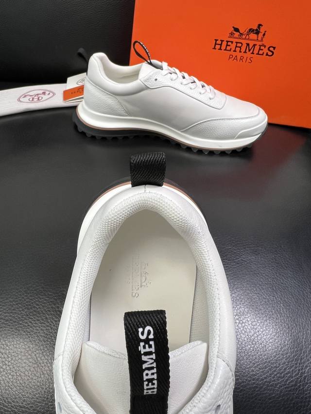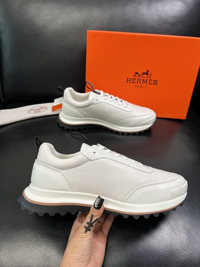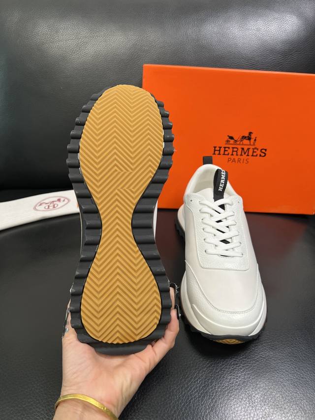 H爱马仕Bouncing运动鞋,男士休闲运动鞋,鞋面牛皮拼接高端网布打造,进口材质,质感十足,轻盈鞋底装饰撞色图案,打造百搭...