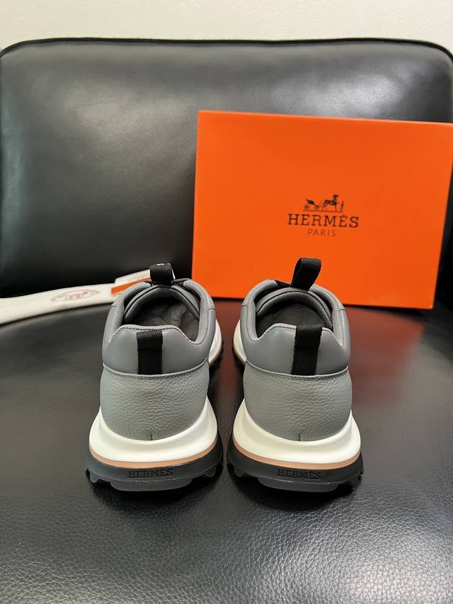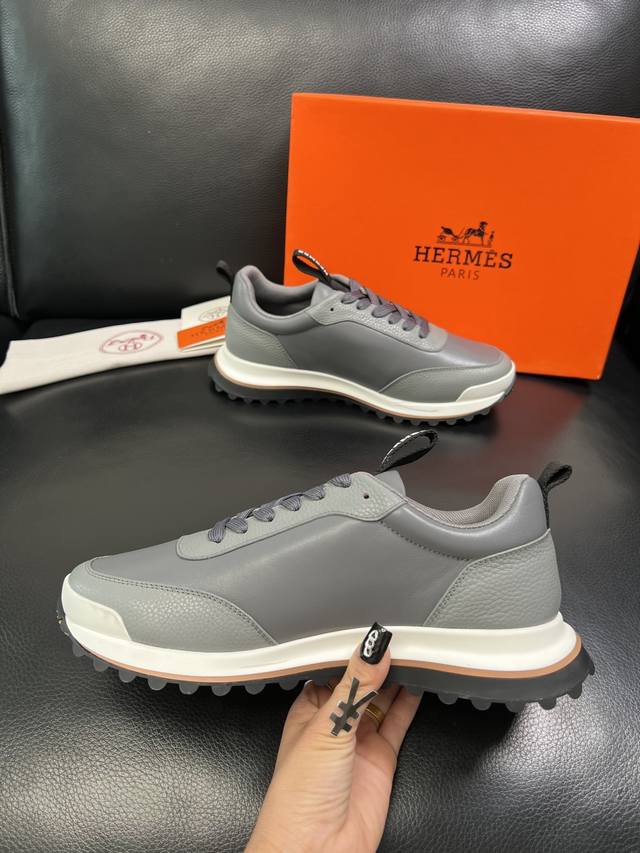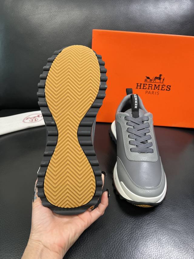 工厂P价 Hermes 爱马仕 Leader运动鞋! 多色拼接高科技斜纹、小牛皮和麂皮山羊皮运动鞋。轻盈几何鞋底,打造时尚都市造型。...