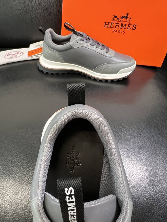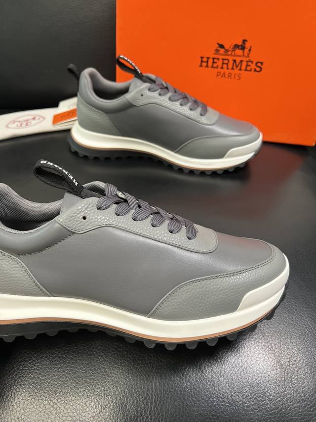 Hermes爱马仕经典系列 情侣款 休闲 运动鞋 滑板鞋 小牛皮运动鞋 超级轻盈鞋底 简介大气 意大利制造 鞋背装饰爱马仕经典锁扣...