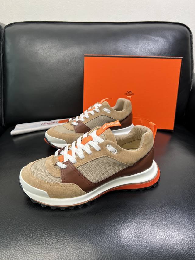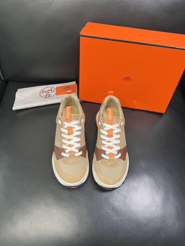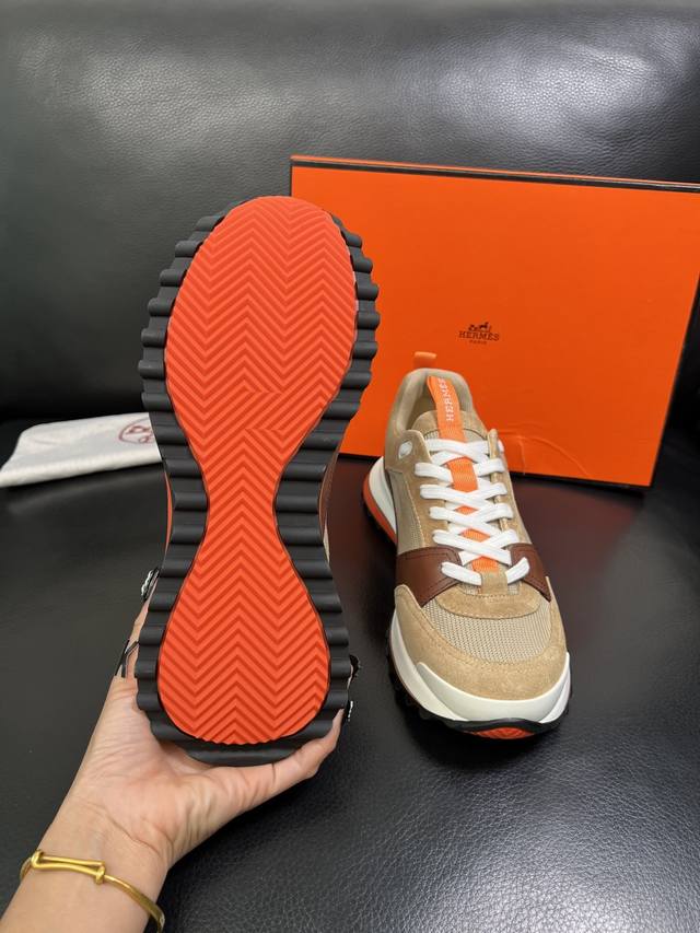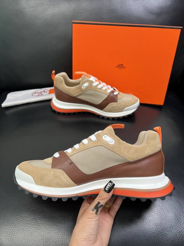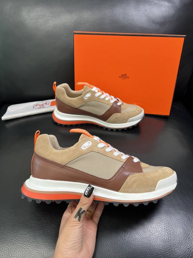 Hermas爱马仕运动鞋 鞋面小牛皮和网布拼接打造 进口材质 质感十足 轻盈鞋底装饰撞色图案 打造百搭时尚风格 size 38-44 45定 ....