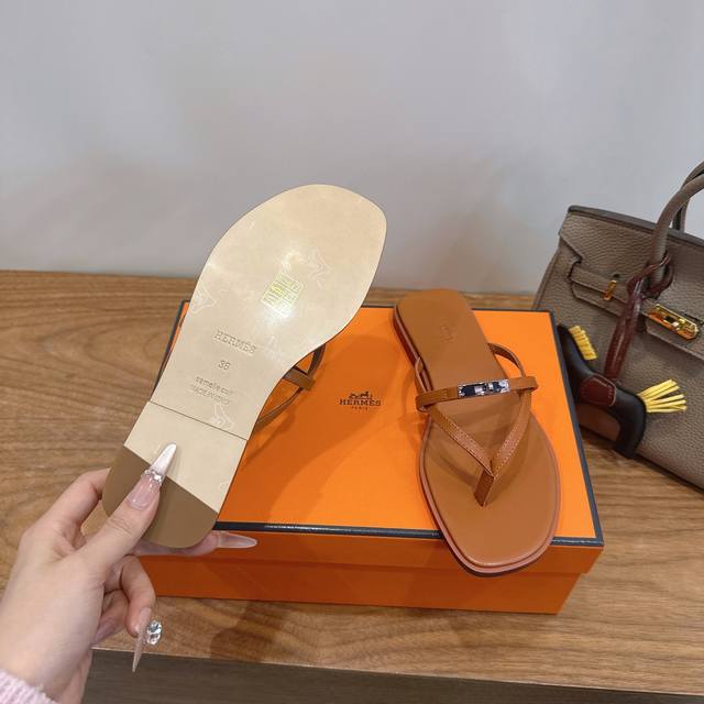 直销 女鞋 女装 HermèS 包装升级,版型做工材料升级。 Hermes纯手工鞋女鞋 女装 女鞋 女装 产品爱马仕拖鞋 早春新款原版一样,...