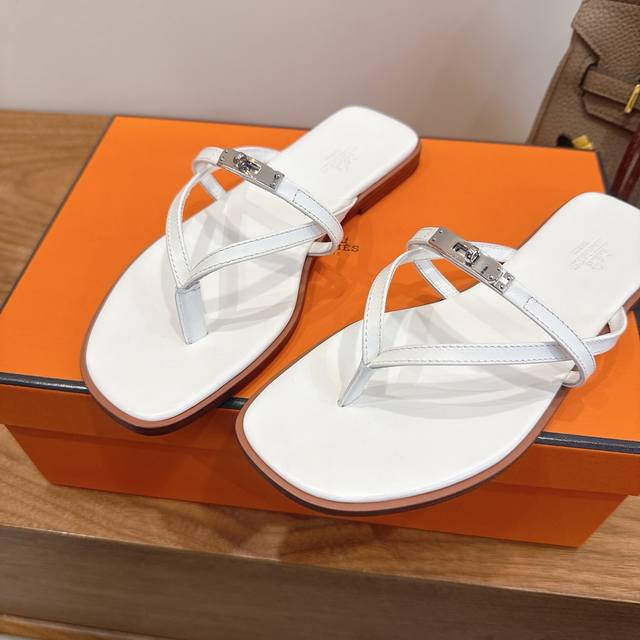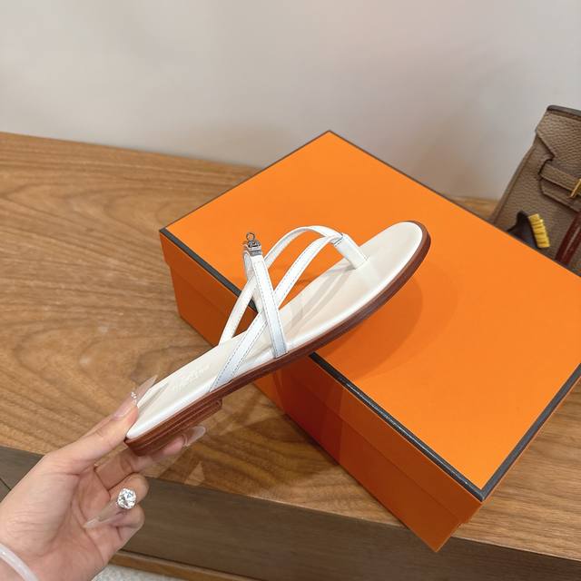 Hermes 爱马仕 -高端品质 原单休闲凉拖鞋 -鞋面:进口荔纹小牛皮、锻造′H′图腾 -内里:水染牛皮 -大底:超轻真皮...