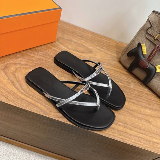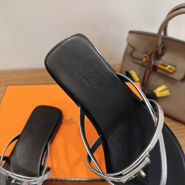 飞机盒另加10 * 爱玛仕 25 2025春夏新品 顶级版本经典H型Oran粗跟拖鞋系列 鞋面:原版特定牛皮 内里:进口混种羊皮...